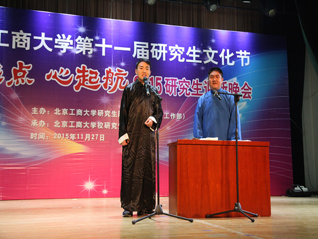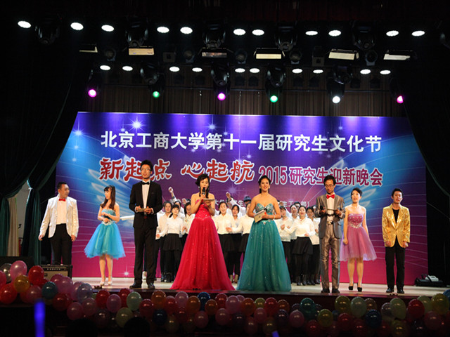 1127日晚,“新起點、心起航”2015研究生迎新晚會暨學校第十一屆研究生文化節在阜成路校區舉行。師生歡聚一堂,共享精彩節目。本次晚會由研究生院(黨委研究生工作部)主辦、校研究生會承辦。研究生院副院長兼研工部副部長熊慧、各學院副書記、輔導員及研究生院老師出席活動。