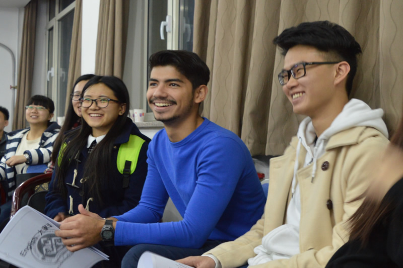 特別在“You perform,I guess”環節,將語言互動特色化,留學生與中國學生廣泛參與,同學們感嘆英語讓多方溝通無障礙,有效鍛煉口語水平。另外,中外學生活動前組織多次語言實踐,共同學習英文歌曲 “Yesterday”,并現場共同演繹多國版本,展現外語研究生風采。活動后,各國學生自發組成英語角,互通有無,結交友誼。