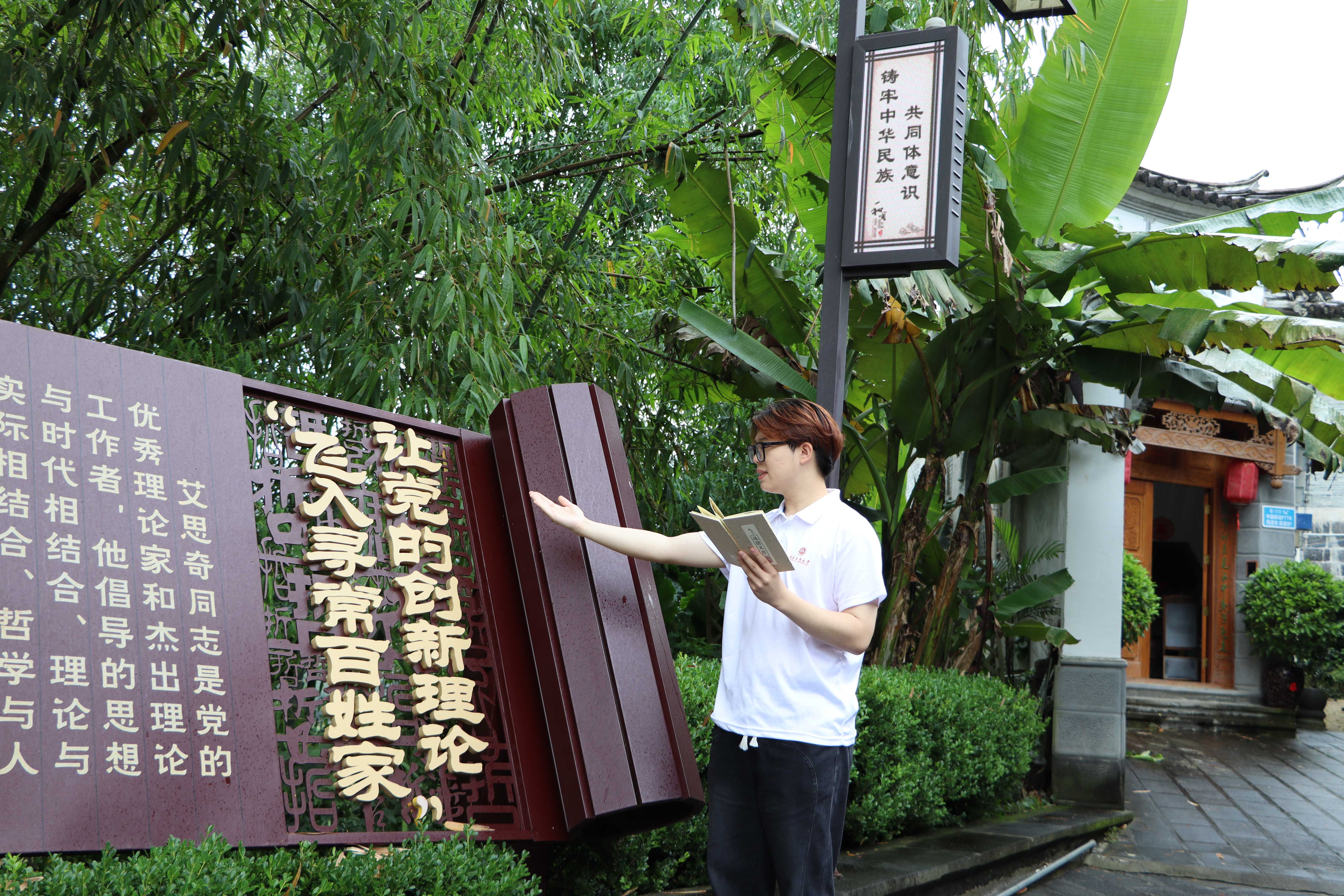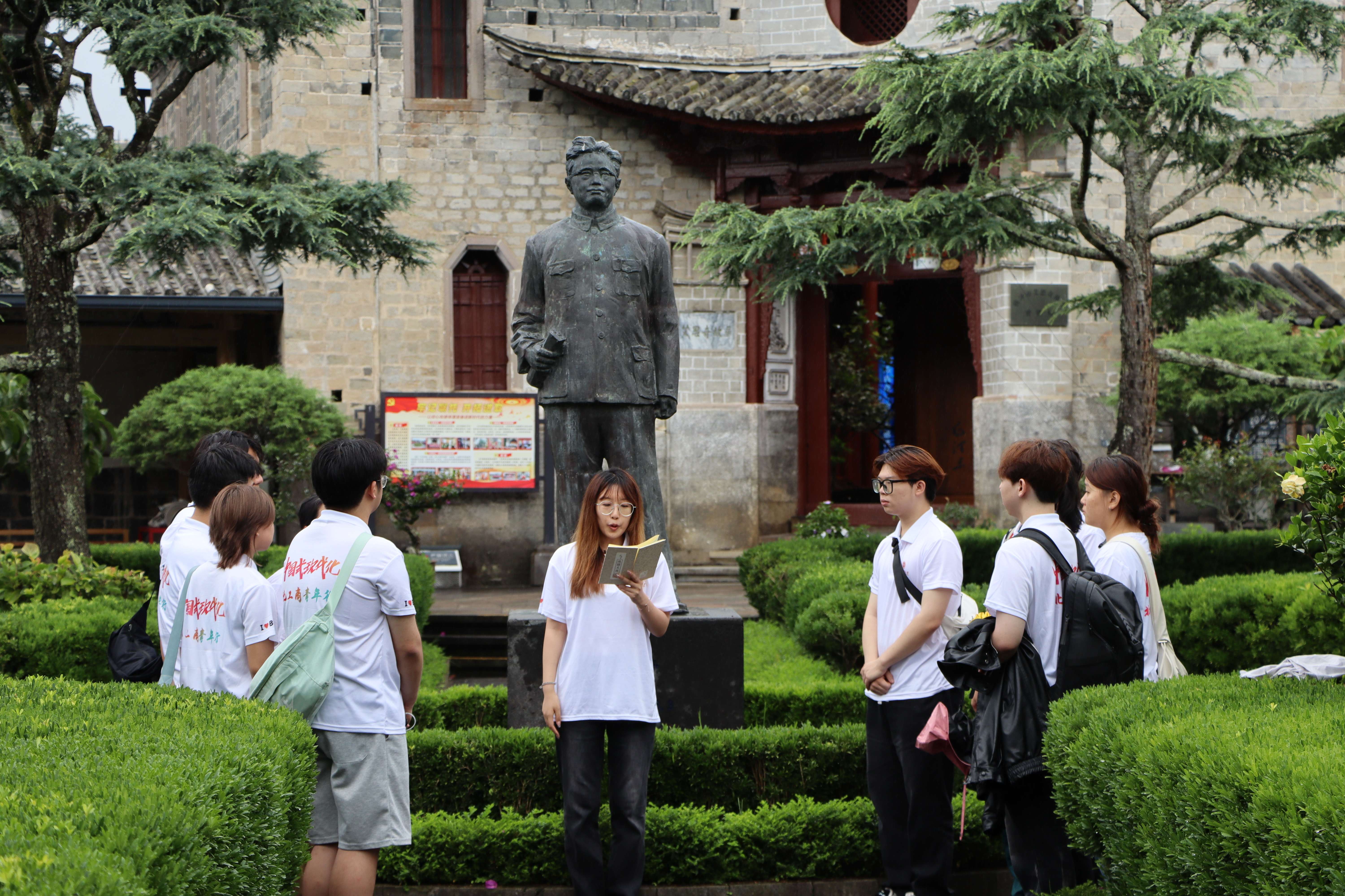 習近平總書記在和順古鎮考察調研時指出,“讓黨的創新理論飛入尋常百姓家”。在艾思奇故居,實踐團仿佛穿越時空、跨越地域,與艾思奇先生進行了一場思想的對話。實踐團連線北京,與校團委黨支部一同開展主題黨日活動,一同探尋馬克思主義中國化發展歷程。“傳承紅色基因”主題宣講著重介紹了馬克思主義中國化堅持與時俱進、堅持理論聯系實際、永葆青春活力的突出特點。