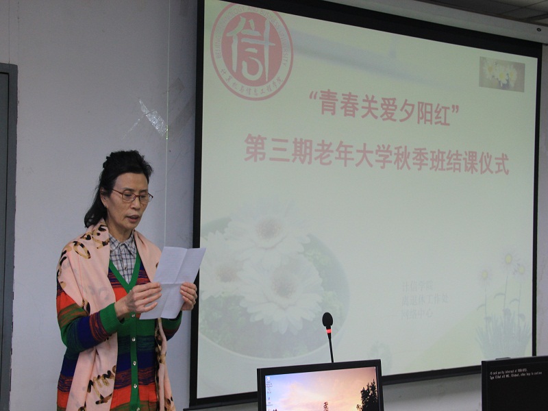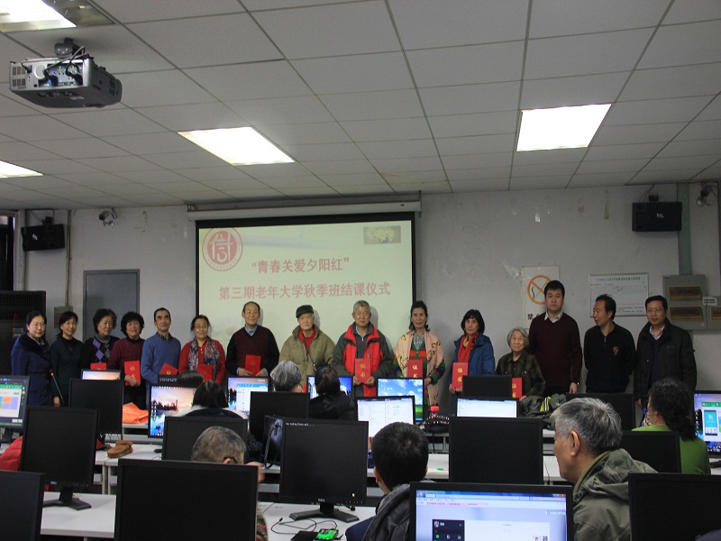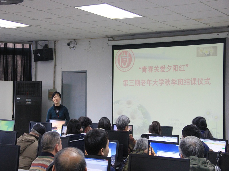 12月16日,學校“青春關愛夕陽紅”離退休教職工計算機培訓班(老年大學2015年秋季班)結(jié)課儀式在阜成路校區(qū)召開。離退休工作處副處長王紅英、計信學院領導陳誼、蔡強、張凱偉、劉新亮及學校離退休教師、學生講師和助教們參加了此次結(jié)課儀式。