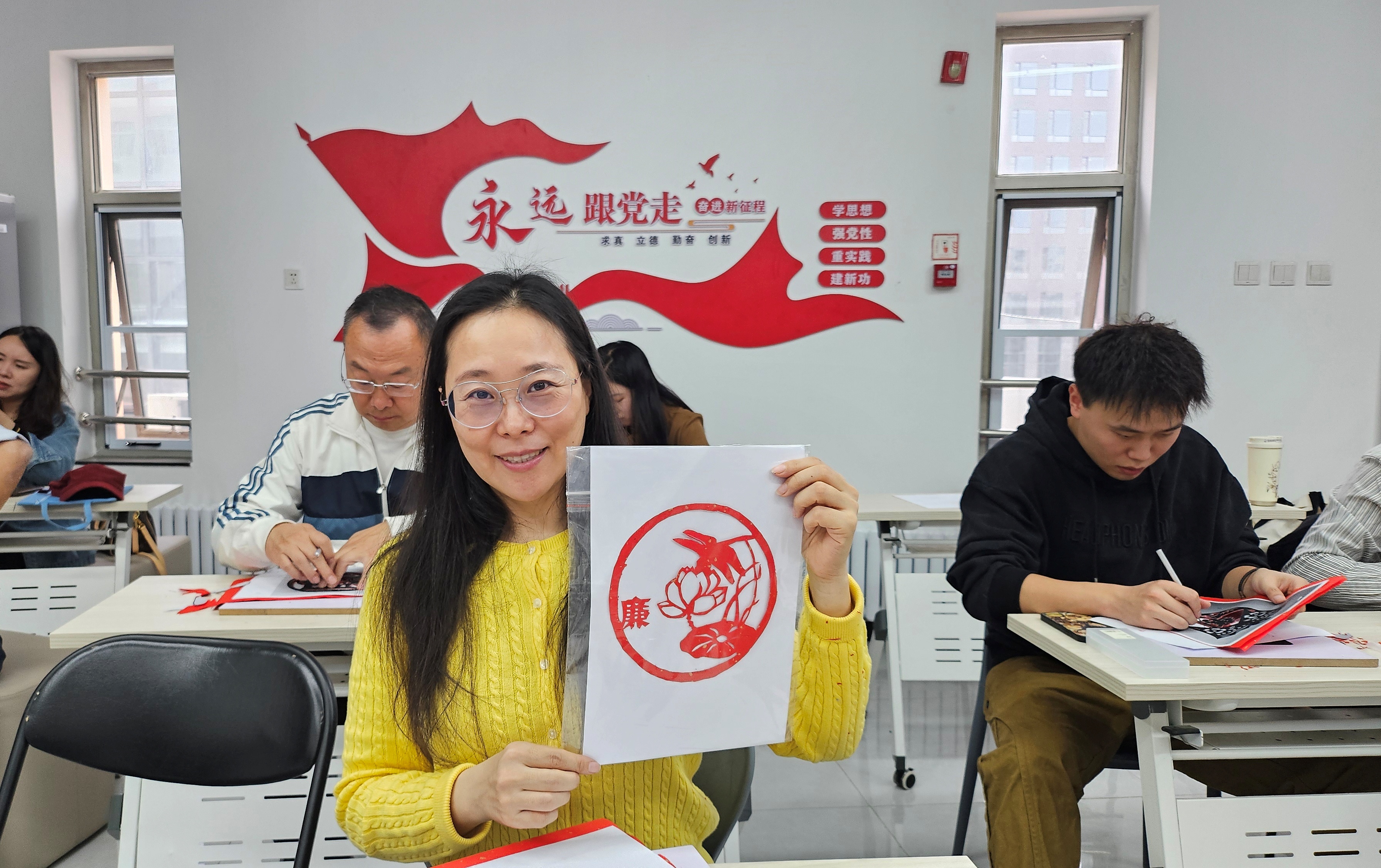 活動邀請工會馬飛老師和學校書畫協會吳強教授到場指導,帶領各支部教職工代表進行剪紙和書法作品創作。大家通過“蓮”“廉”“警鐘”等創意設計和名言警句臨摹,將心中對廉潔文化的感知形象化表達出來,充分展現了黨風廉政建設和藝術形式的結合。