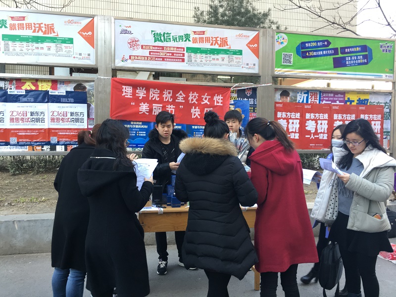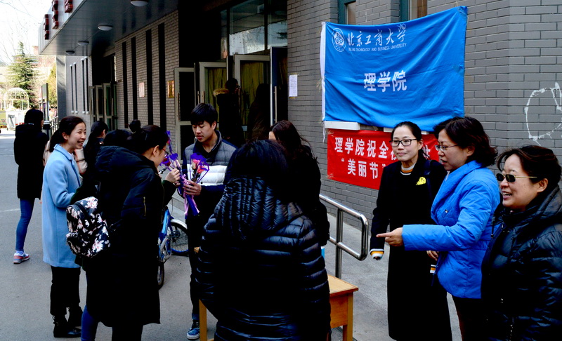 37日、8日,理學院化妝品系、化妝品協會利用中午時間分別在阜成路東、西兩校區食堂門口舉辦關愛女性,共慶美麗節主題活動,在女生節和婦女節之際向學校女性師生提供專業的皮膚護理意見。理學院化妝品專業學科負責人何聰芬教授、理學院黨委副書記王嘉彥出席活動。