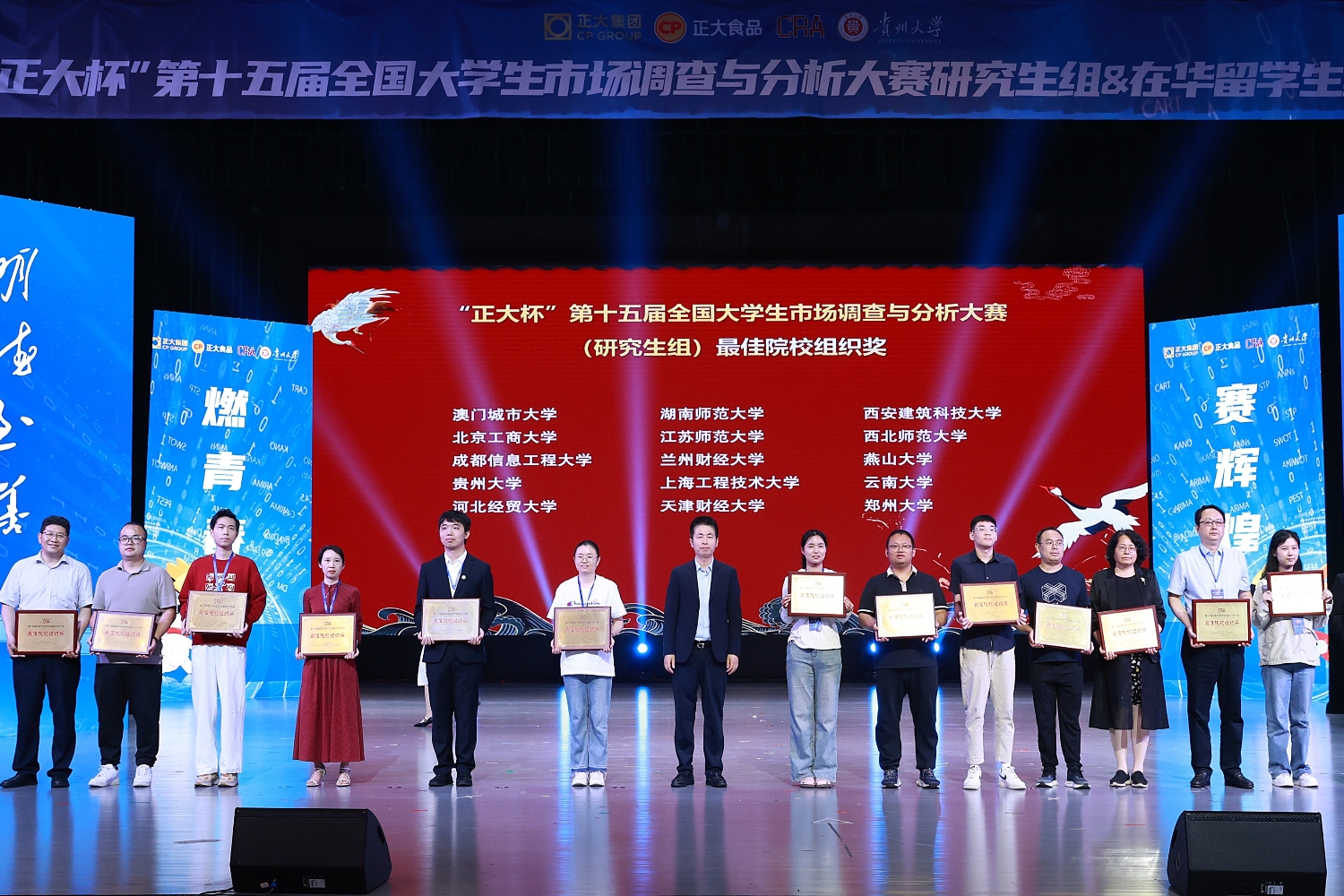 5月17日-5月18日,由中國商業統計學會、全國大學生市場調查與分析大賽組委會主辦,正大集團冠名的“正大杯”第十五屆全國大學生市場調查與分析大賽研究生組決賽在貴州大學圓滿落幕,也為我校“正大杯”第十五屆全國大學生市場調查與分析大賽畫上圓滿句號。本次比賽我校共有3支團隊進入全國總決賽答辯,榮獲全國一等獎1項,全國二等獎2項。