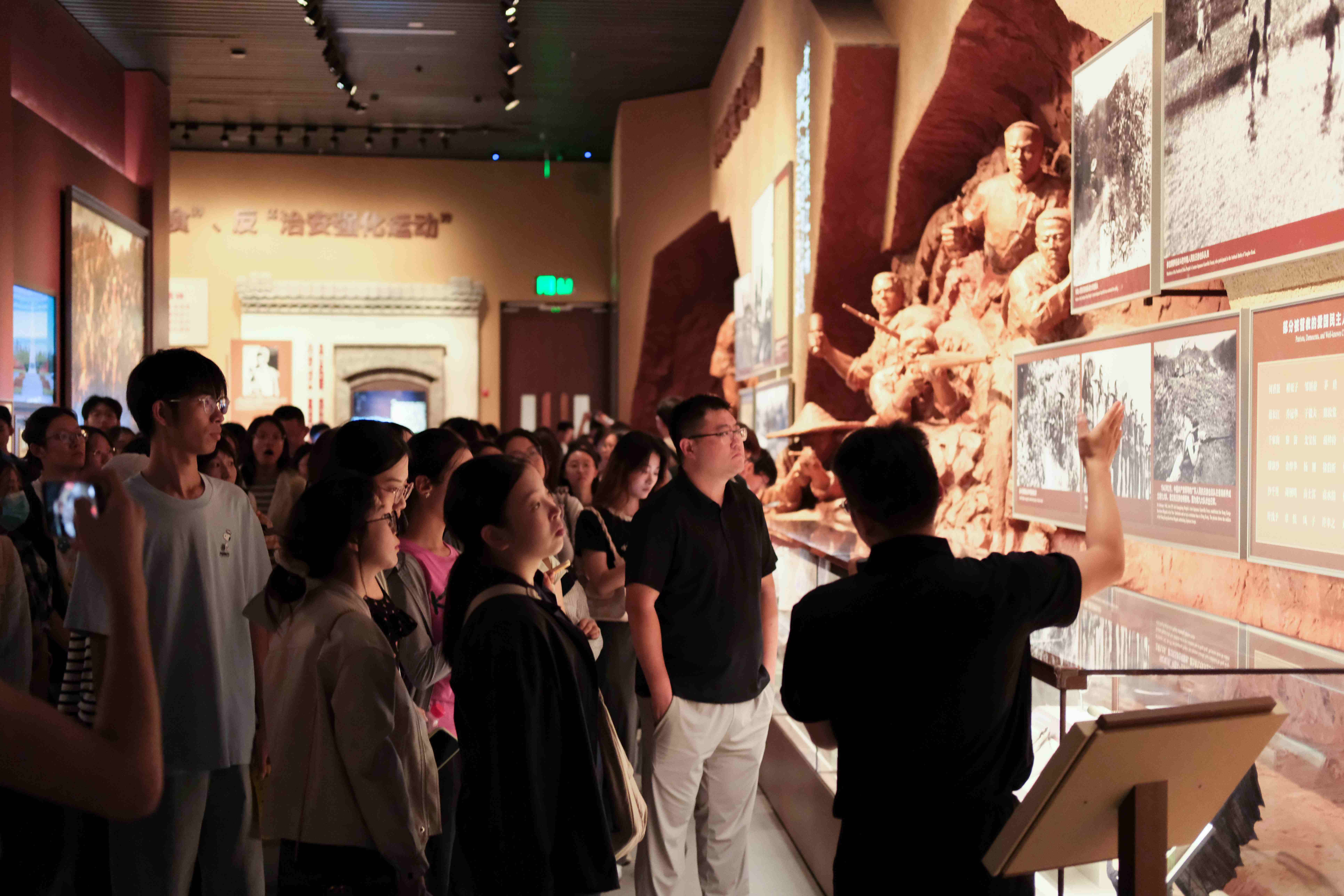 此次主題展覽以“銘記歷史、緬懷先烈、珍愛和平、開創未來”為主題,展覽面積1.22萬平方米,展出照片1525張,文物3237件,通過“珍貴文物+檔案文獻+歷史影像+藝術品+歷史場景”,結合科技手段的布展方式,全景式展現中國人民14年抗戰的偉大歷程。在工作人員的引導下,全體師生有序入館,依次參觀“中國局部抗戰”“全民族抗戰”“中流砥柱”“日軍暴行”“東方主戰場”“得道多助”“偉大勝利”“銘記歷史”八大展區,深刻認識到中國共產黨在全民族抗戰中所發揮的中流砥柱作用和中國人民抗日戰爭對世界反法西斯戰爭勝利的歷史貢獻。