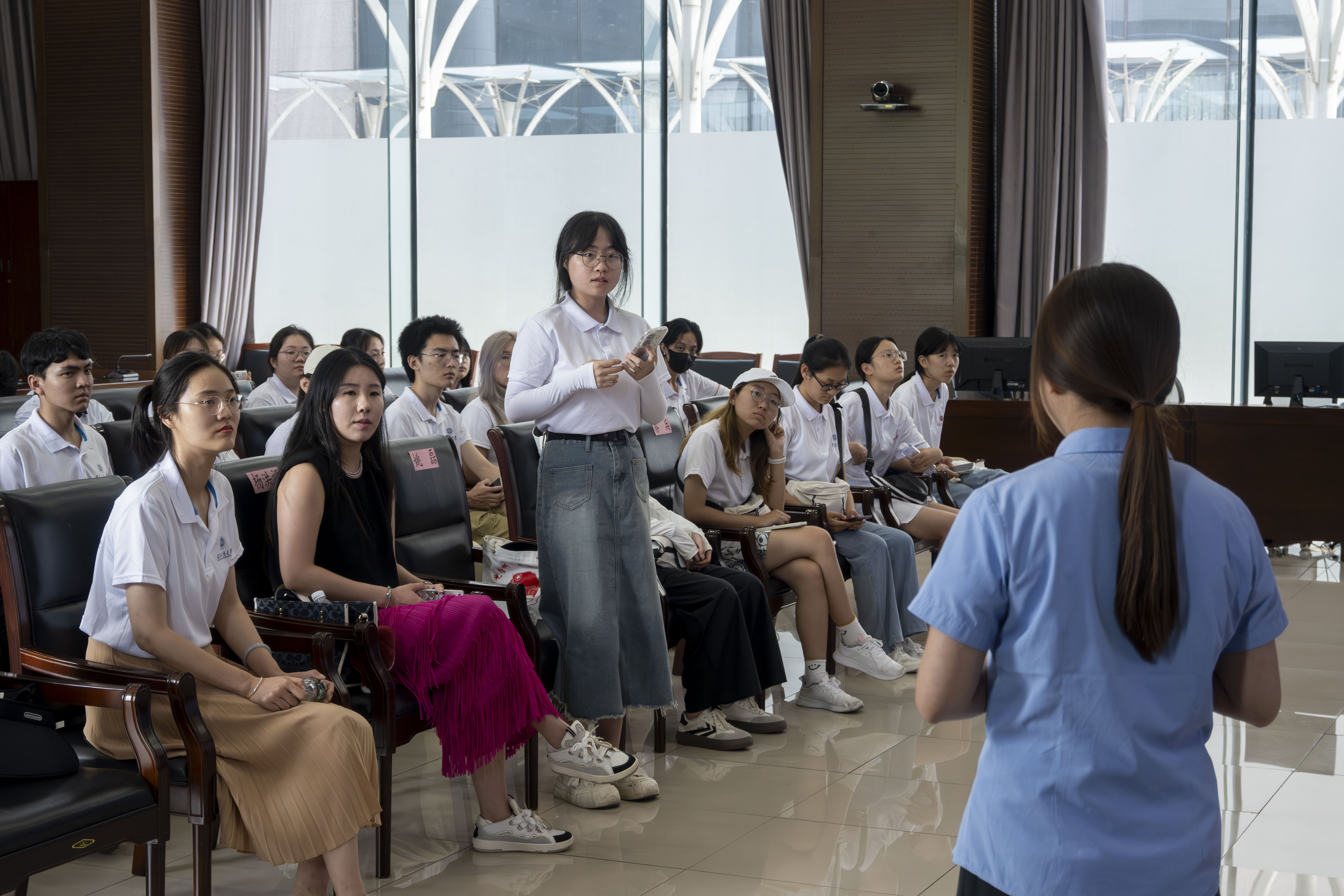 法學(xué)院、計算機與人工智能學(xué)院攜手學(xué)校“第一應(yīng)答”團隊組成聯(lián)合實踐團,50余名師生走進12345市民熱線服務(wù)中心進行調(diào)研,了解“互聯(lián)網(wǎng)+政務(wù)服務(wù)”的治理模式,尋找“訴源治理”解決途徑,牢固樹立“為國為民”的崇高理想。實踐團成員就“第一應(yīng)答”工作中遇到的問題和“如何建立良好的溝通協(xié)調(diào)機制”展開討論,進一步深化實踐團對基層治理的理解,堅定青年服務(wù)基層的情懷和責(zé)任,提升從事群眾工作的經(jīng)驗,為增強學(xué)校解決學(xué)生訴求的服務(wù)能力注入新思路、增強新力量。