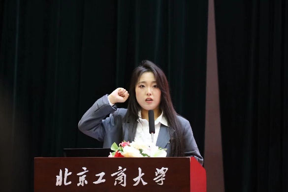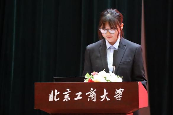 金融工程232班姜楠作為新生代表發言。她認為,新時代的青年是祖國的未來,應堅定自己的理想信念,把個人的理想追求融入黨和國家事業之中,在“求真、立德、勤奮、創新”的校訓教誨下,持新軔之尺,破風未知。
