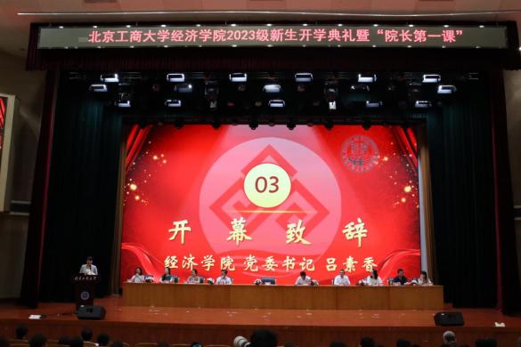 人生新序章,始于初秋;經心向遠方,奔赴山海。9月27日下午,經濟學院2023級新生開學典禮暨“院長第一課”在良鄉主校區A報告廳舉行。學院全體領導班子成員、各系教授代表、系主任、2023級本科生班主任、輔導員,以及全體2023級本科生和研究生共計750余人參加本次大會。會議由學院黨委副書記李艷春主持。