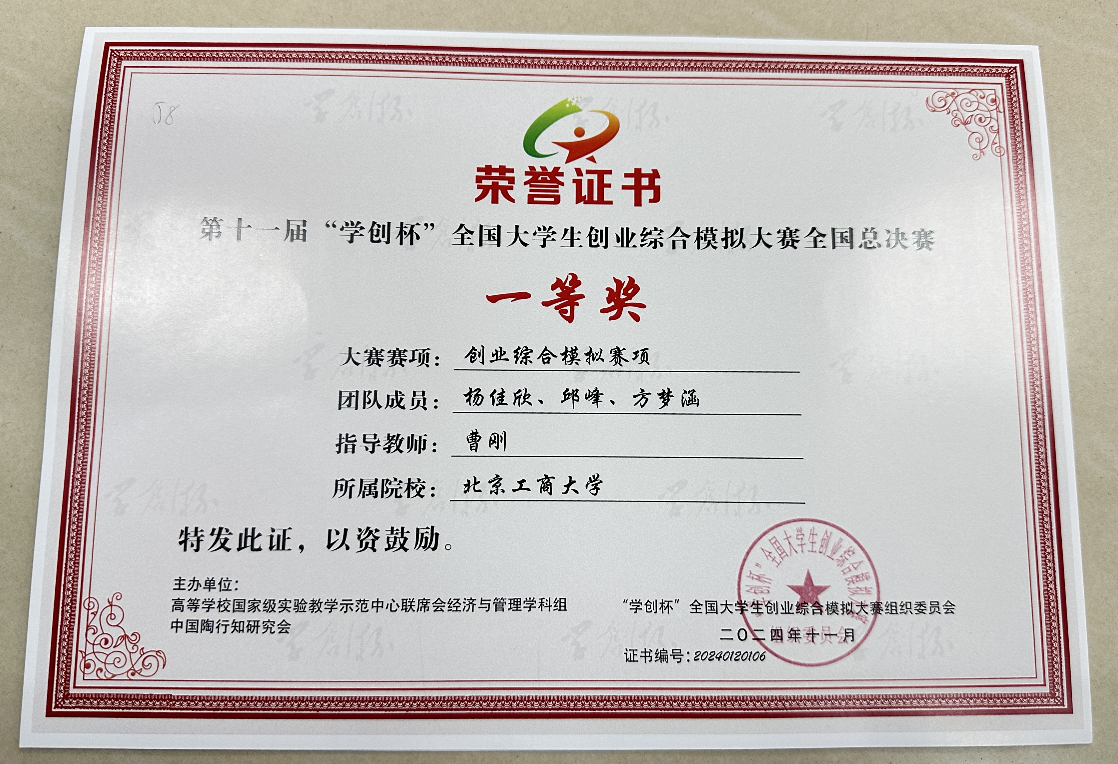 本屆比賽是我校第九次代表北京市高校參加全國總決賽。經濟學院3月份啟動校園大賽,從全校80余支隊伍,240余名參賽隊員中選拔出15名同學組成校隊。經過大家努力備賽最終從北京市比賽中脫穎而出。其中,兩支順利進入國賽的參賽團隊經過四個月刻苦訓練與準備,最終在賽場上綻放光芒,取得佳績。這次比賽優異成績的取得離不開教務處創新創業教育學院、學生處、校團委和相關學院的大力支持,充分展示了北京工商大學學子創新創業綜合素質與實戰能力,是我校創新創業教育和高質量人才培養的體現。