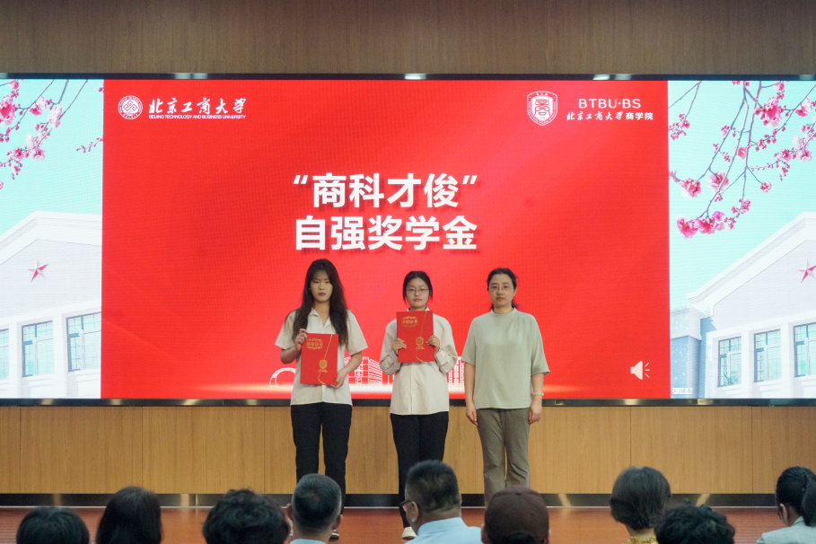 5月20日,商學院“商科才俊”獎學金頒獎儀式在阜成路校區舉行。北京德信匯富投資管理有限公司副總裁、86儲運班校友王肖男,學校校友會教育基金會辦公室主任張春萍,商學院黨委書記樊江濤、黨委副書記張悅、組織管理學系主任朱蓉、智能財會學系主任李慧聰、數字運營學系主任崔麗、獲獎學生及師生代表參加會議。頒獎儀式由張悅主持。