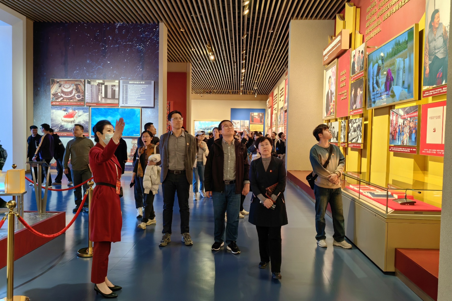 一件件革命文物穿越時空,訴說著當年的崢嶸歲月。在講解員的講解下,黨員們認真觀看歷史圖片、歷史文物以及歷史復原景觀,再次了解建黨之初先輩們的重重艱險,看到了先輩的大義凜然和勇往直前,感受到中國共產黨在抗日戰爭、解放戰爭等無數戰役中,矢志不渝“為中國人民謀幸福,為中華民族謀復興”的初心和使命。同時,在現代科技的光影間贊美祖國今天的繁榮昌盛,感嘆美好生活的來之不易。
