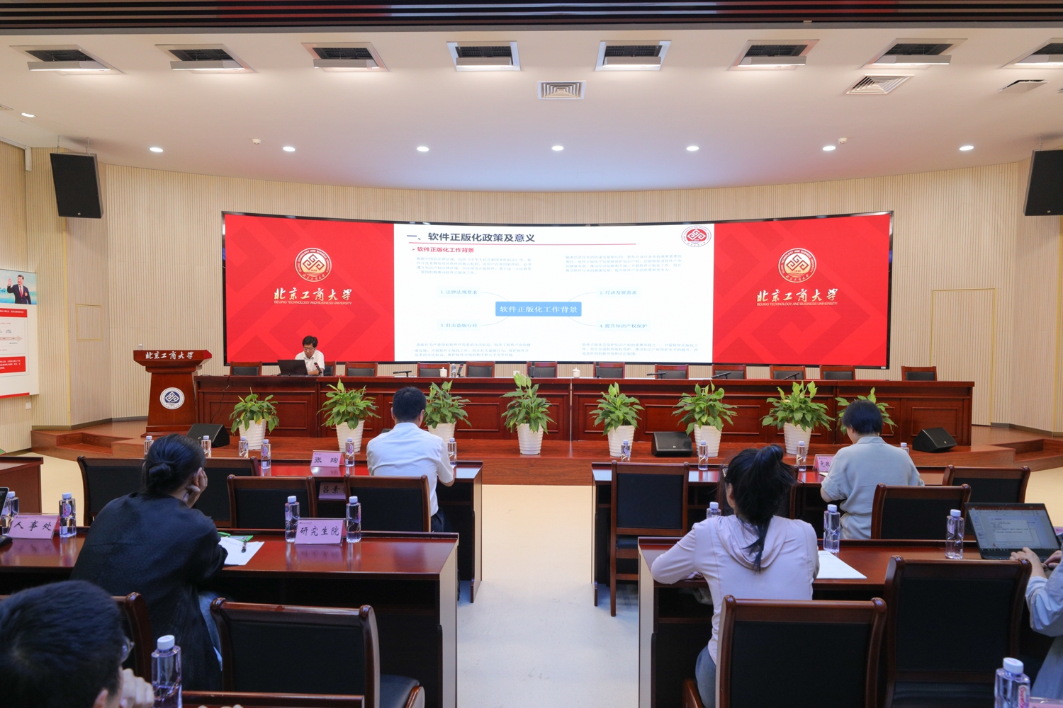 黨委常委、黨委宣傳部部長倪國華傳達(dá)了北京市軟件正版化工作動員部署會議精神,回顧了學(xué)校2024年軟件正版化工作成果,介紹了今年軟件正版化工作的重點方向和實施方案。同時,他就各二級單位需推進(jìn)的工作、自查整改的時間節(jié)點以及年底的檢查考核進(jìn)行了詳細(xì)部署。網(wǎng)絡(luò)與信息化管理中心副主任侯堃進(jìn)行軟件正版化工作培訓(xùn),從軟件正版化政策及意義,學(xué)校正版化軟件的構(gòu)成、軟件正版化工作考核安排、正版化迎檢相關(guān)要求等方面進(jìn)行了詳細(xì)介紹。