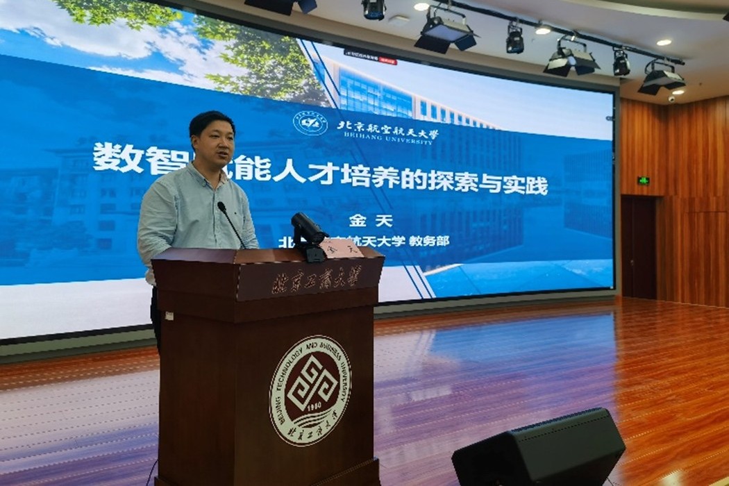 為深入貫徹落實國家教育數字化戰略行動,推進我校“十四五”發展規劃,全面提升教師數智化教學能力,探索新時代人才培養模式改革,4月16日下午,學校在主校區組織開展“數智賦能人才培養探索與實踐”專題講座。講座特別邀請北京航空航天大學教務部副部長、博士生導師金天教授做專題分享。各教學單位教學院長、系主任、教學秘書及骨干教師代表一百余人參加了此次講座,講座由教務處副處長熊科主持。會議同步由騰訊會議進行線上直播。