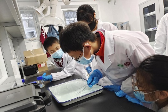12月2日下午,首師大二附中初一初二學生在初二年級組長趙春麗的帶領下走進學院實驗室深入開展科創訓練。我校生態環境學院副院長(主持工作)姚志良教授對此次活動進行了全程現場指導。經過前期實驗室環境與安全以及相關課題基礎知識等方面的認知與學習,首師大二附中的同學們做好了充分準備,根據自己前期選擇的課題方向分別跟隨毋波波、賈璇、丁寧和姜善學等教師開展實驗研究,研究生環境科學與工程黨支部黨員在支部書記的帶領下進行協助指導。