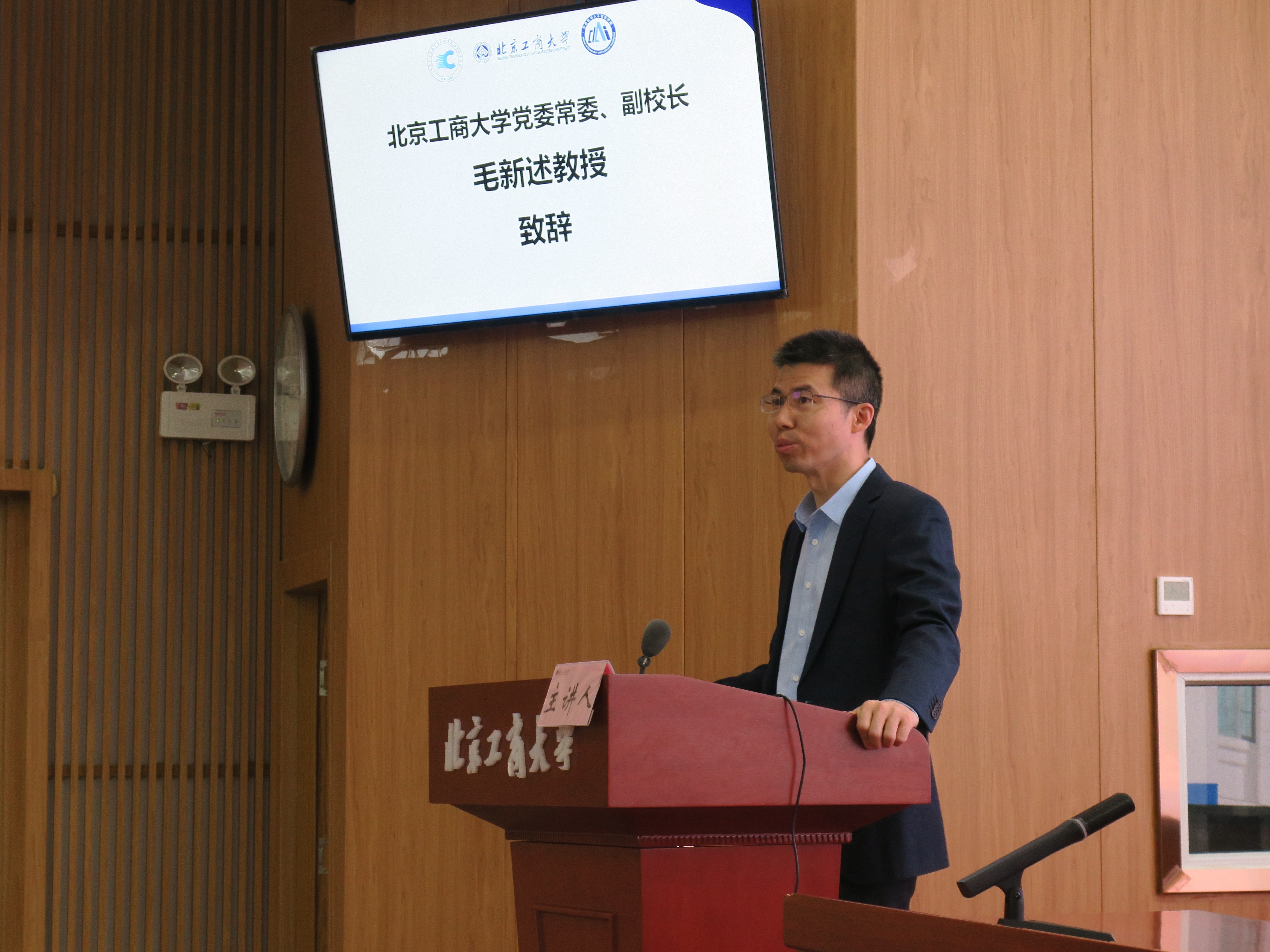 毛新述代表學校致辭。他對各位專家的到來表示熱烈的歡迎,重點介紹了我校“工商一體化”發(fā)展戰(zhàn)略,通過工科與商科深度融合,構建“學科交叉-產教融合-人才貫通-社會服務”協同體系,培養(yǎng)復合型創(chuàng)新人才。