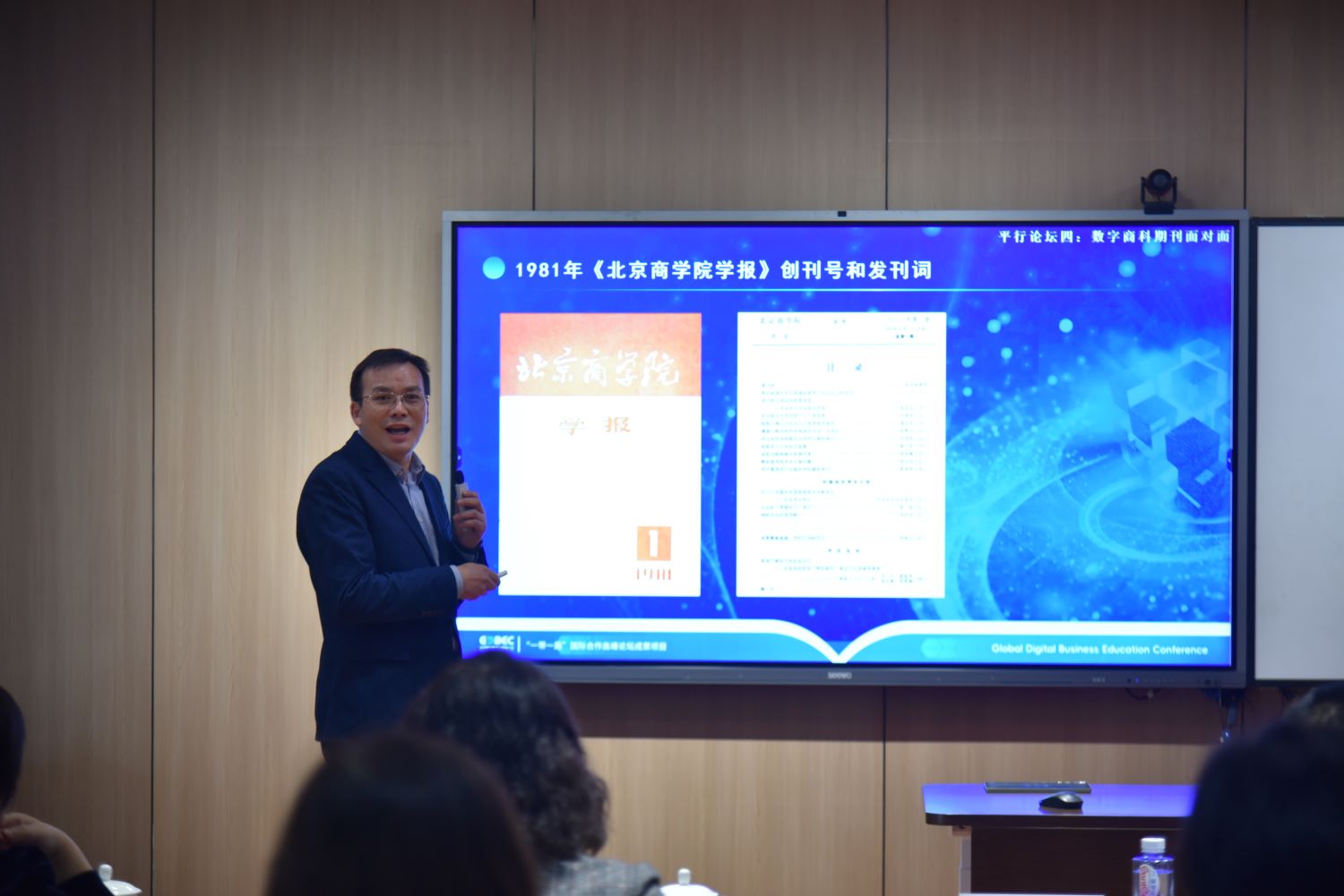10月19日,數(shù)字商科期刊論壇暨《北京工商大學(xué)學(xué)報(bào)(社會(huì)科學(xué)版)》常務(wù)編委會(huì)在我校阜成路校區(qū)召開(kāi)。本次會(huì)議是全球商科數(shù)字化教育大會(huì)以“數(shù)字商科期刊創(chuàng)新發(fā)展”為主題的平行論壇,由北京工商大學(xué)期刊管理中心主辦,北京工商大學(xué)商學(xué)院、經(jīng)濟(jì)學(xué)院、法學(xué)院以及數(shù)字未來(lái)中心協(xié)辦。學(xué)校黨委常委、副校長(zhǎng)、《北京工商大學(xué)學(xué)報(bào)(社會(huì)科學(xué)版)》常務(wù)副主編毛新述出席會(huì)議并致歡迎辭,黨委副書記李中奇為常務(wù)編委代表頒發(fā)聘書。11位家權(quán)威期刊(機(jī)構(gòu))負(fù)責(zé)人、13位常務(wù)編委代表、期刊管理中心全體工作人員和來(lái)自國(guó)內(nèi)外高校的科研人員參加了此次會(huì)議。