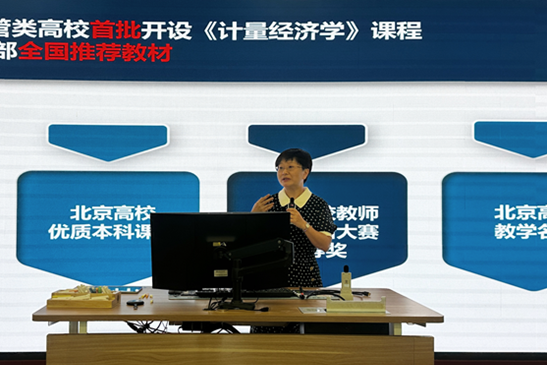 對外經濟貿易大學陳志鴻教授分享了《多模塊、雙通道的<計量經濟學>高校課題設計》示范課程。她通過展示課程的多模塊雙通道設計,包括計量經濟理論、計算機操作和實證應用,強調了教學中理論與實踐結合的重要性。
