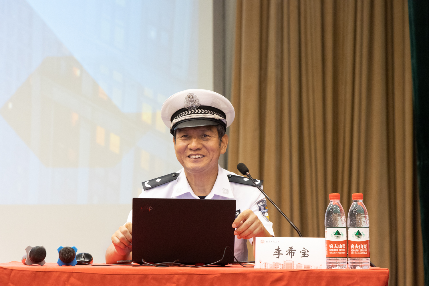 北京市海淀區(qū)高等院校交通安全工作部門聯(lián)席會辦公室主任李希寶警官走進我校新生集中入學教育的課堂,以真實案例為教材,闡釋交通安全事故的發(fā)生經(jīng)過、深入剖析背后成因,從中提煉經(jīng)驗教訓,揭示交通事故的嚴重危害性。李警官從道德責任與生命價值視角詮釋交通安全的重要性,引導學生樹立安全意識。