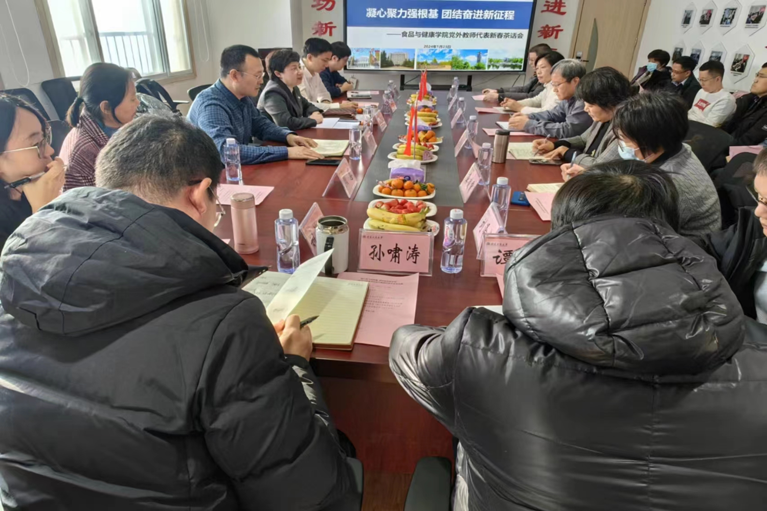 為充分發揮統一戰線重要法寶作用,推動學院事業高質量發展,1月23日,食品與健康學院召開黨外教師代表新春茶話會。學校黨委統戰部副部長陳桂營、學院領導班子、各民主黨派及無黨派教師代表共聚一堂,以“凝心聚力強根基,團結奮進新征程”為主題,共話學院發展,同迎龍年新春。茶話會由學院黨委書記鄭喜姣主持。