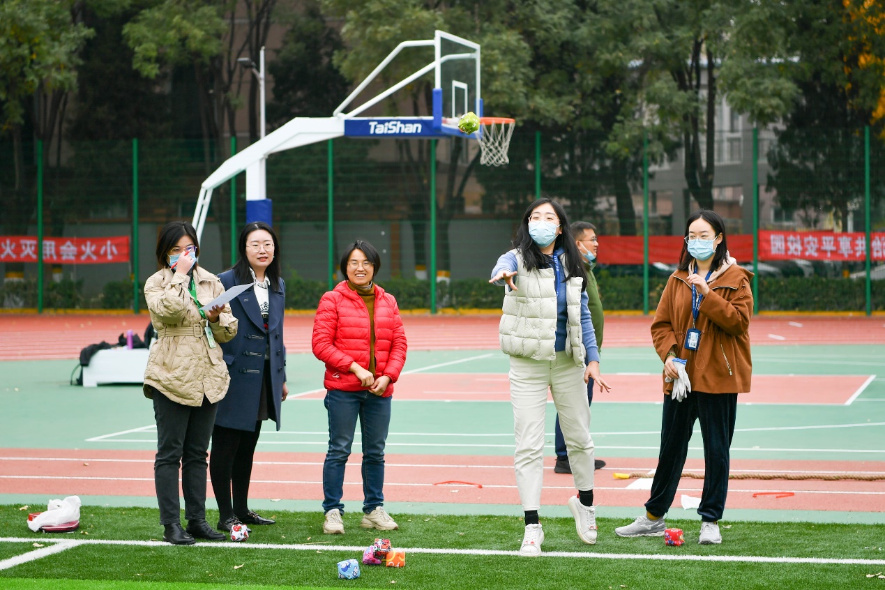 賽場上,學(xué)生們青春飛揚,活力四射,老師們也毫不遜色,在各類項目中嶄露英姿。沙包擲準成為了女老師們最愛的項目,比賽開始大家躍躍欲試,瞄準中心靶位找好角度往前擲;百步穿楊成為了男老師們最喜歡的活動,隨著籃球打到籃球框邊,蹦跳著轉(zhuǎn)著圈落入框中,掉下來的瞬間響起一聲聲歡呼聲;最受老師和同學(xué)們喜歡的集體項目當屬拔河比賽了,同學(xué)們興高采烈、精神抖擻、一邊安排人員,一邊準備大顯身手,老師也加入其中,隨著“一二,一二”兩邊拼命用力地拉著繩子,師生團結(jié)在一起,奮力一拔;師生接力賽由每隊3位學(xué)生和2位老師組成,用時最短即為獲勝,這項比賽既要考驗的機智、靈活,又要考驗團隊的精誠合作,大家齊心協(xié)力最后都取得了不錯的成績。