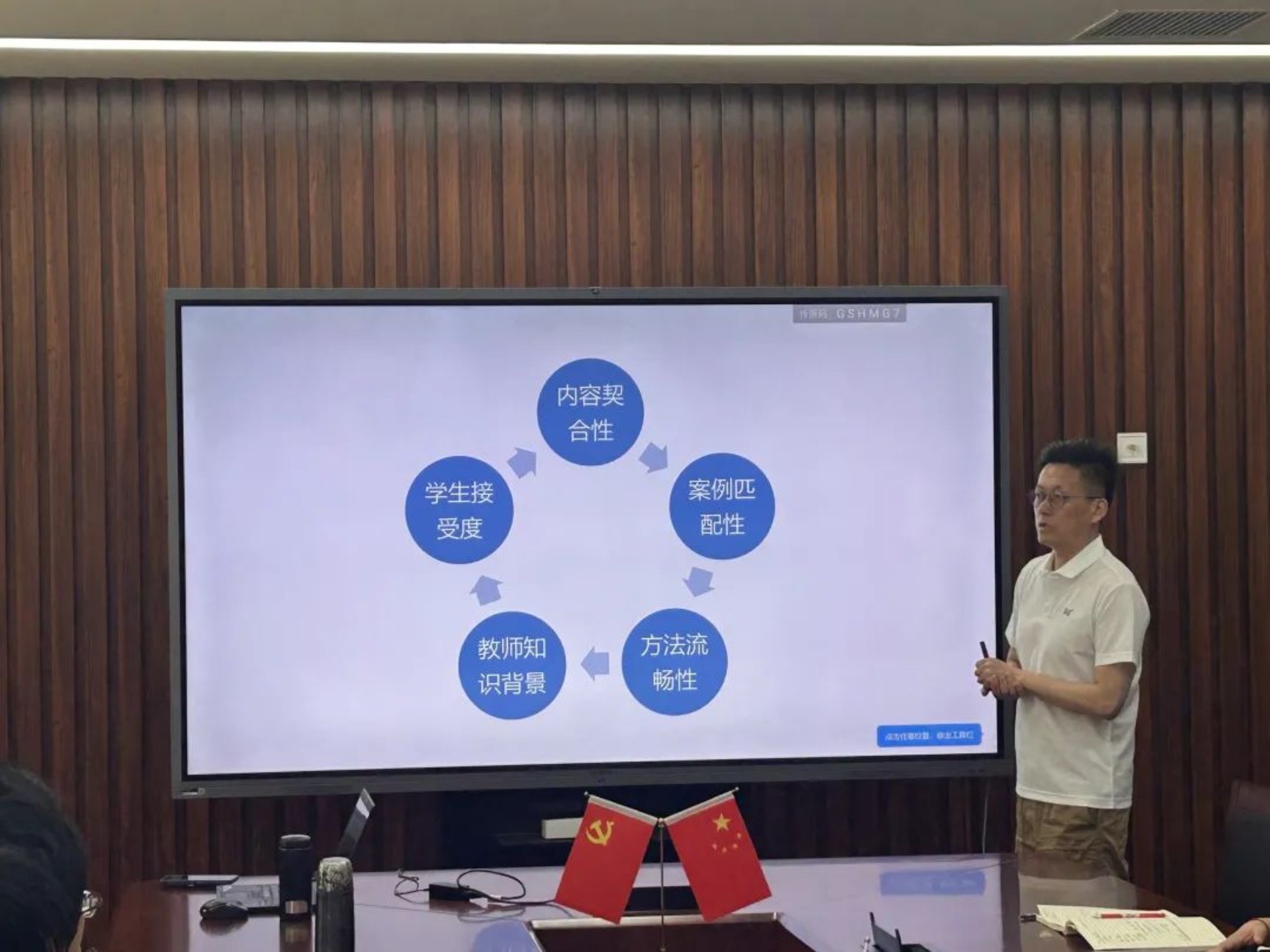 備課會上,各教研室老師圍繞“一院一課”建設紛紛發表見解。葛學彬就習近平新時代中國特色社會主義思想概論的“一院一課”建設分享了思考,強調內容契合性、學生接受度、案例匹配性以及方法流暢性的重要性,同時指出教師知識背景的關鍵作用。他還提到在教學中要遵循有限性、適度性和主次性原則,并以社會主義現代化建設的教育、科技、人才戰略一章的第三節為例,結合中國被“卡脖子”的技術清單,如人工智能芯片、傳感器等,與我校食品、商科、輕工、計算機與人工智能等專業相聯系,讓理論知識更貼近學生專業實際。