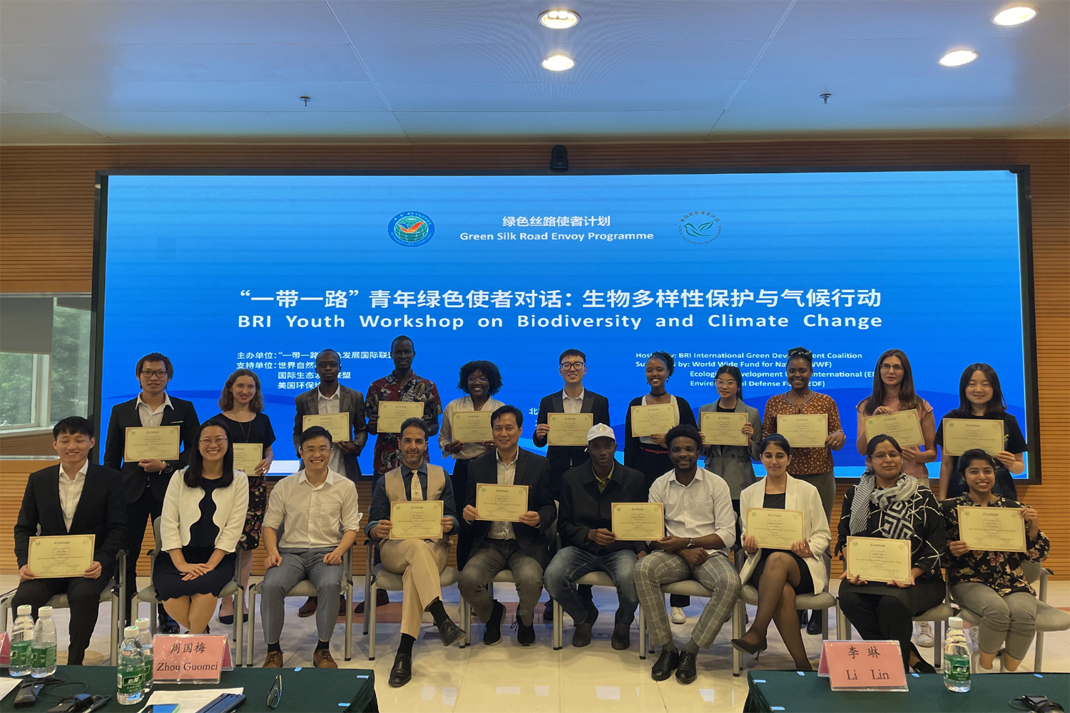 本次大會上,學校兩位青年博士生和其他中外青年學子一起,獲得“一帶一路”綠色發(fā)展國際聯(lián)盟頒發(fā)的證書,當選為“綠色使者”。各國青年學子們承諾,將積極投身于生物多樣性保護及氣候變化應(yīng)對行動中,從自身做起,在科學研究、知識傳播、社會生活等各個領(lǐng)域積極履行青年的責任與擔當,凝聚共識,協(xié)同行動,為生物多樣性保護及氣候變化應(yīng)對貢獻力量。