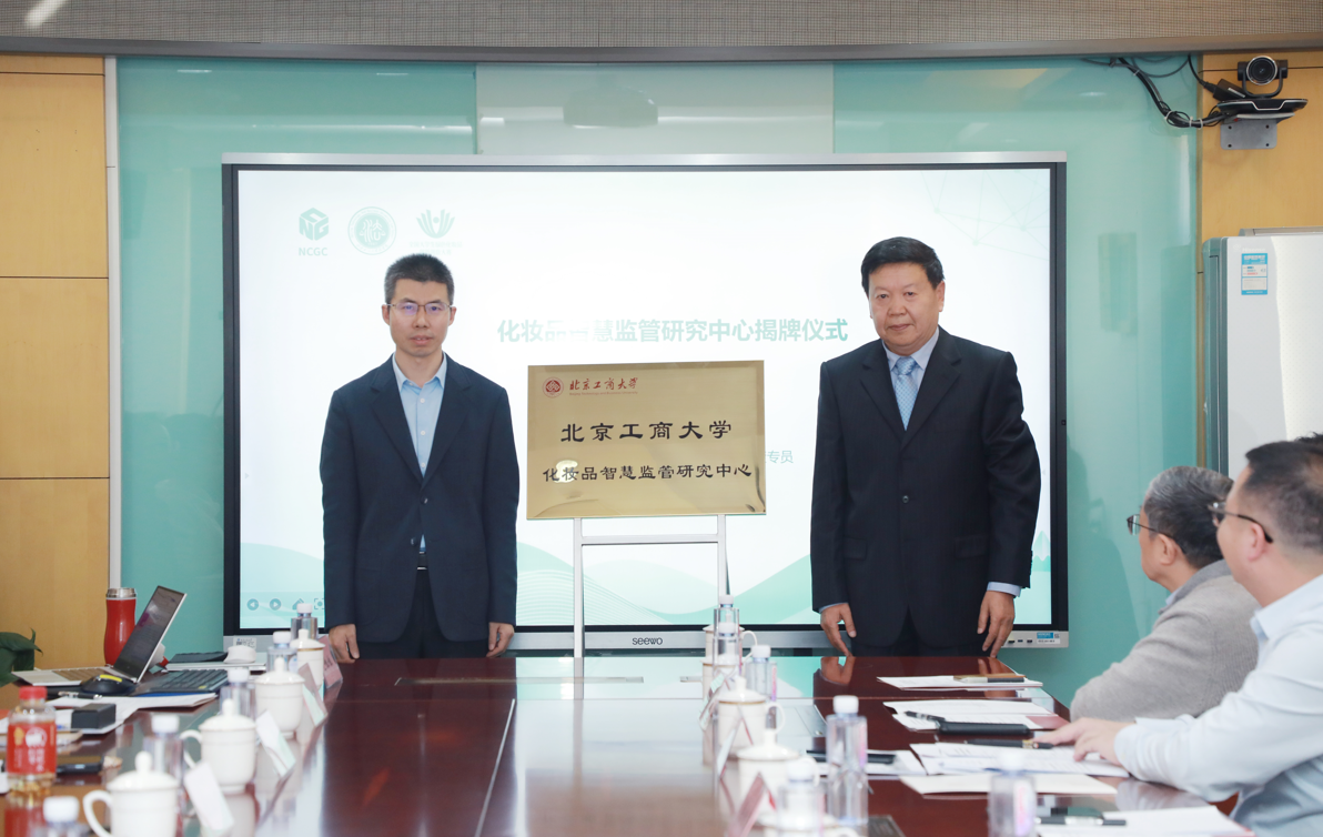 毛新述和李玉家共同為化妝品智慧監(jiān)管研究中心揭牌。