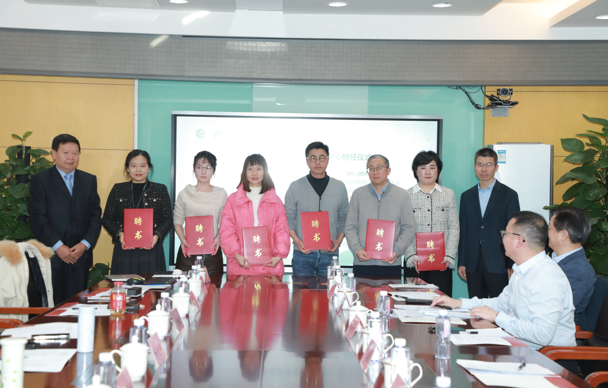 毛新述為中心主任陳敦、執(zhí)行主任程偉、副主任董彪、郝琳琳、李麗頒發(fā)了聘書;