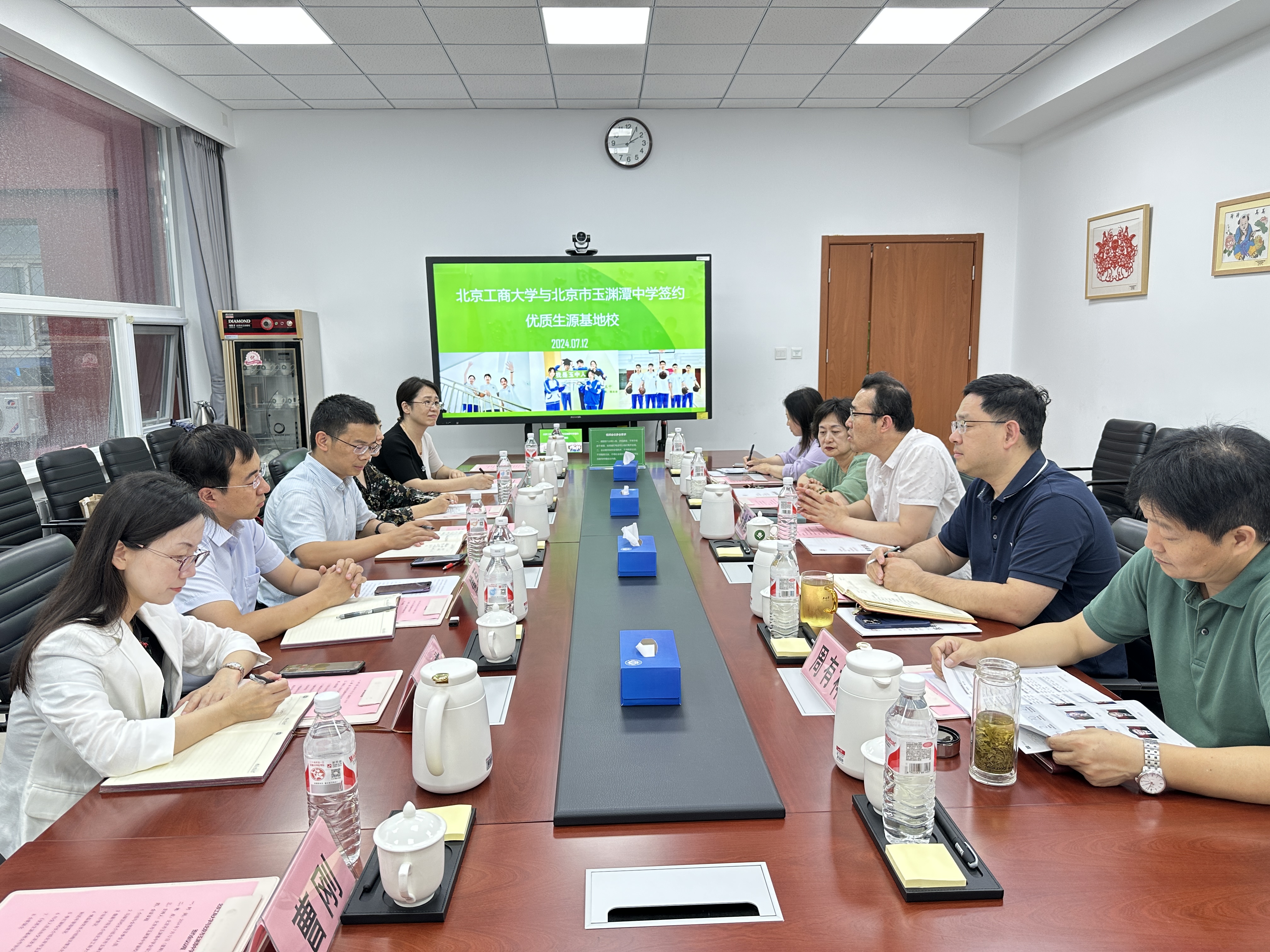 為進一步深化高等教育和基礎教育銜接,切實提高本科生源質量,做好學校本科招生和人才培養工作,7月12日下午,經濟學院執行院長詹新宇帶隊赴北京市玉淵潭中學,舉行了優質生源基地簽約及授牌儀式。北京市玉淵潭中學執行校長馬耀國、黨總支書記趙杰志、副校長李紅、辦公室主任李莉、生物組組長周有祥,我校招生就業處副處長傅磊,經濟學院副院長牛曉燕、馬雪嬌,輕工科學與工程學院副院長靳玉娟,經濟學院貿易經濟系專業主任曹剛出席活動。