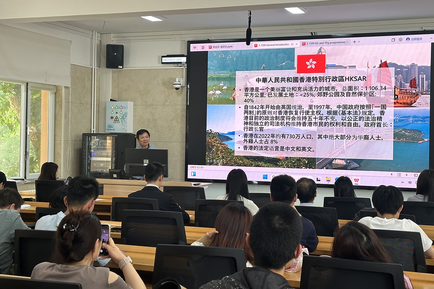 訪問團首先在教二樓作專場宣講,學院近百名師生積極參加,宣講會由王蓓主持。會上,陳聲介紹了香港理工大學食品科學與營養學系的基本情況。方家熙詳細解讀了該系本科(FST)、授課型碩士(2MSc)、研究型碩博士(Mphil,PhD)和食品管理學博士(DFSM)的課程體系、培養方案、入學標準以及職業發展前景。同學們積極提問,就申報條件、專業選擇等話題與訪問團成員進行了深入交流。