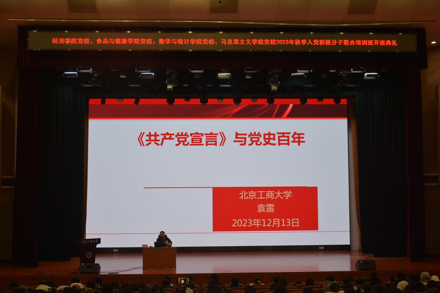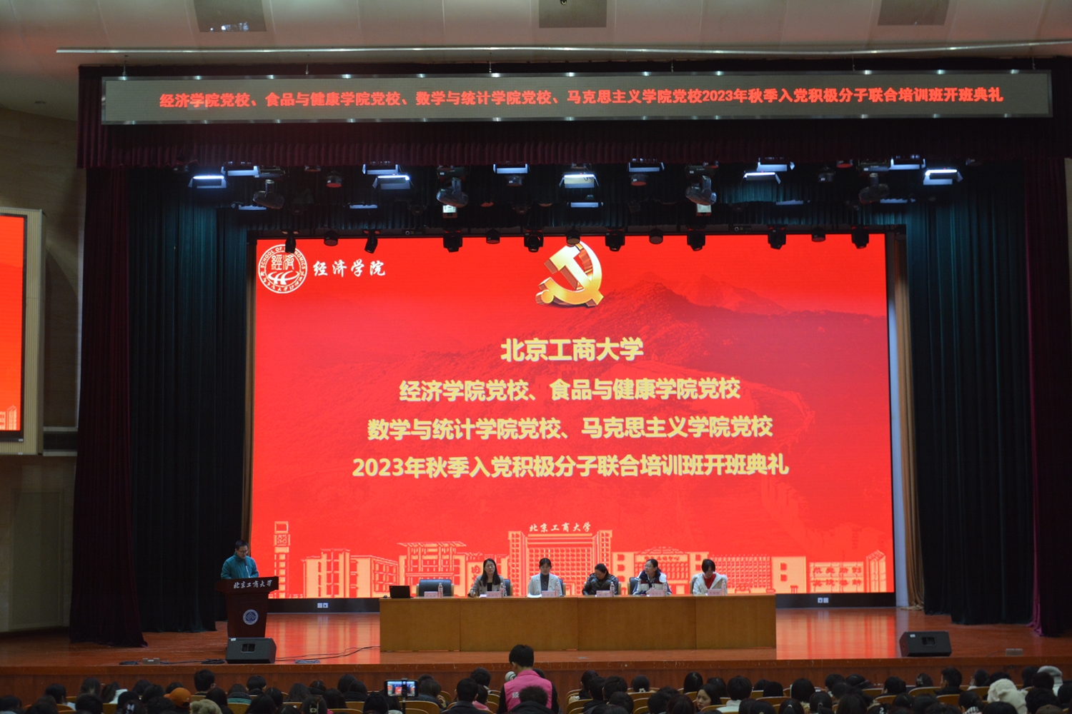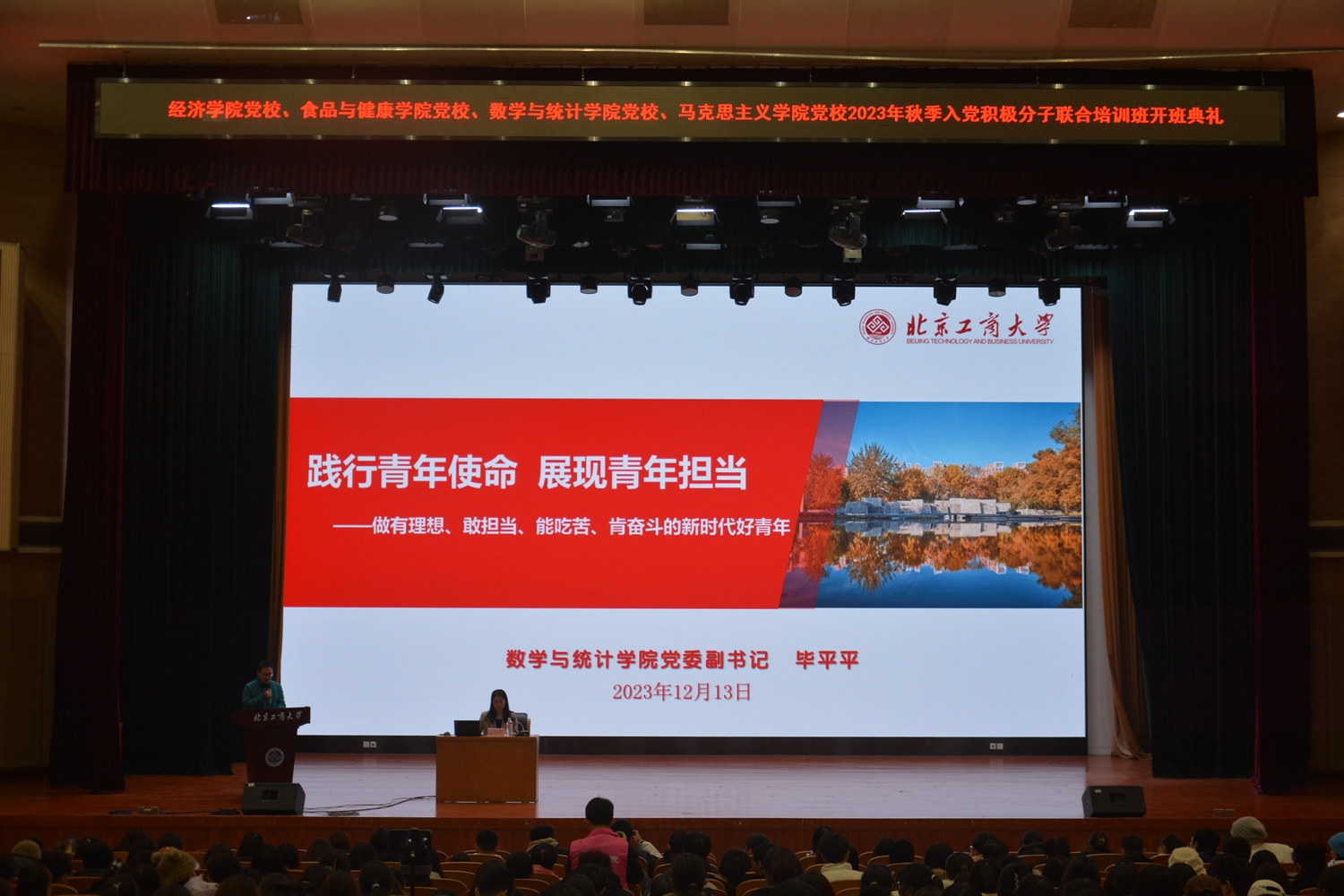 12月13日,經濟學院黨校、食品與健康學院黨校、數學與統計學院黨校、馬克思主義學院黨校2023年秋季入黨積極分子培訓班開班典禮于良鄉主校區隆重舉行。參加開班典禮的有食品與健康學院黨委書記鄭喜姣、經濟學院黨委副書記李艷春、食品與健康學院黨委副書記熊慧、數學與統計學院黨委副書記畢平平,以及各學院專職組織員。