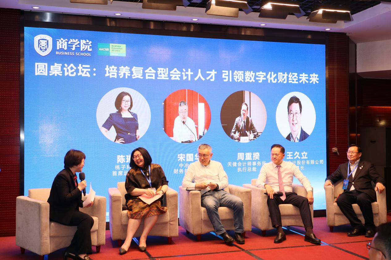 在圓桌討論環(huán)節(jié),何玉潤(rùn)與四位業(yè)界資深專家現(xiàn)場(chǎng)互動(dòng)交流,對(duì)行業(yè)和企業(yè)需要什么樣的會(huì)計(jì)人才、怎樣培養(yǎng)優(yōu)秀復(fù)合型人才等現(xiàn)實(shí)問題作了進(jìn)一步探討。