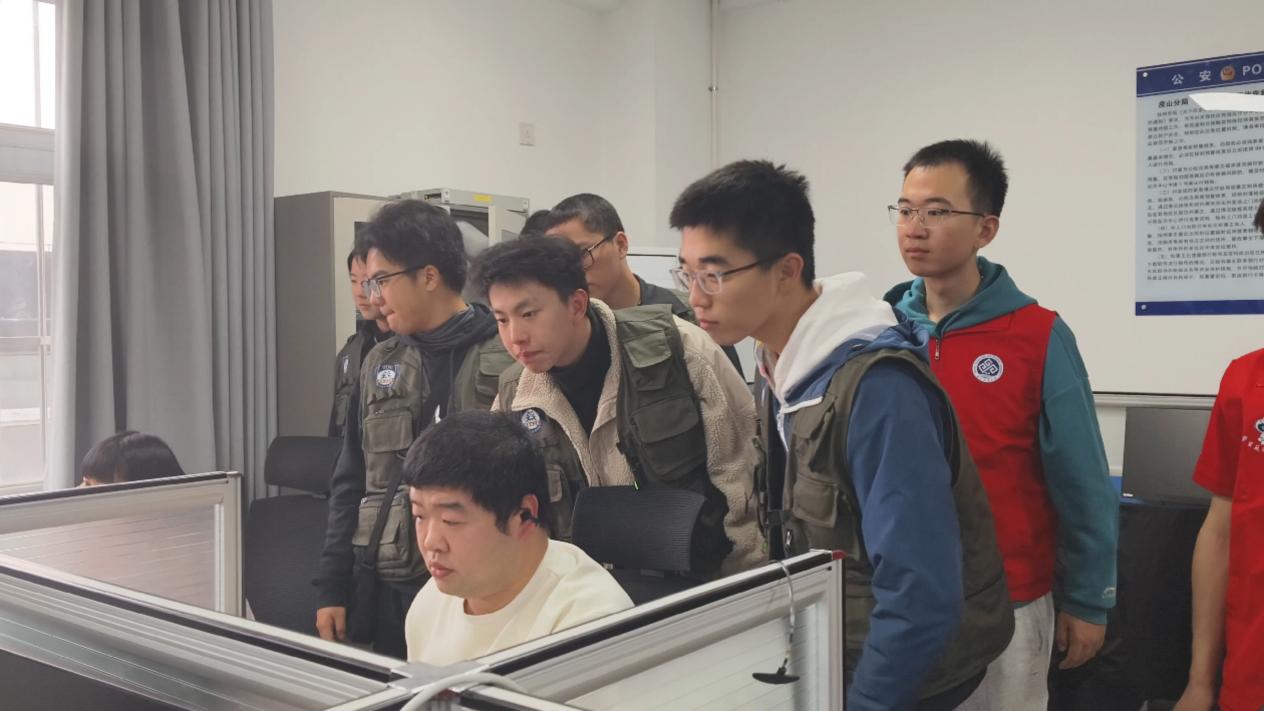 在房山分局拱辰地區反詐中心,同學們現場觀摩了反詐勸阻員的工作過程。當了解到勸阻員每天要撥打近2000個勸阻電話,而且經常會遭到被勸阻人的冷言冷語甚至辱罵時,大家無不感嘆默默奉獻的勸阻員們工作的艱辛。