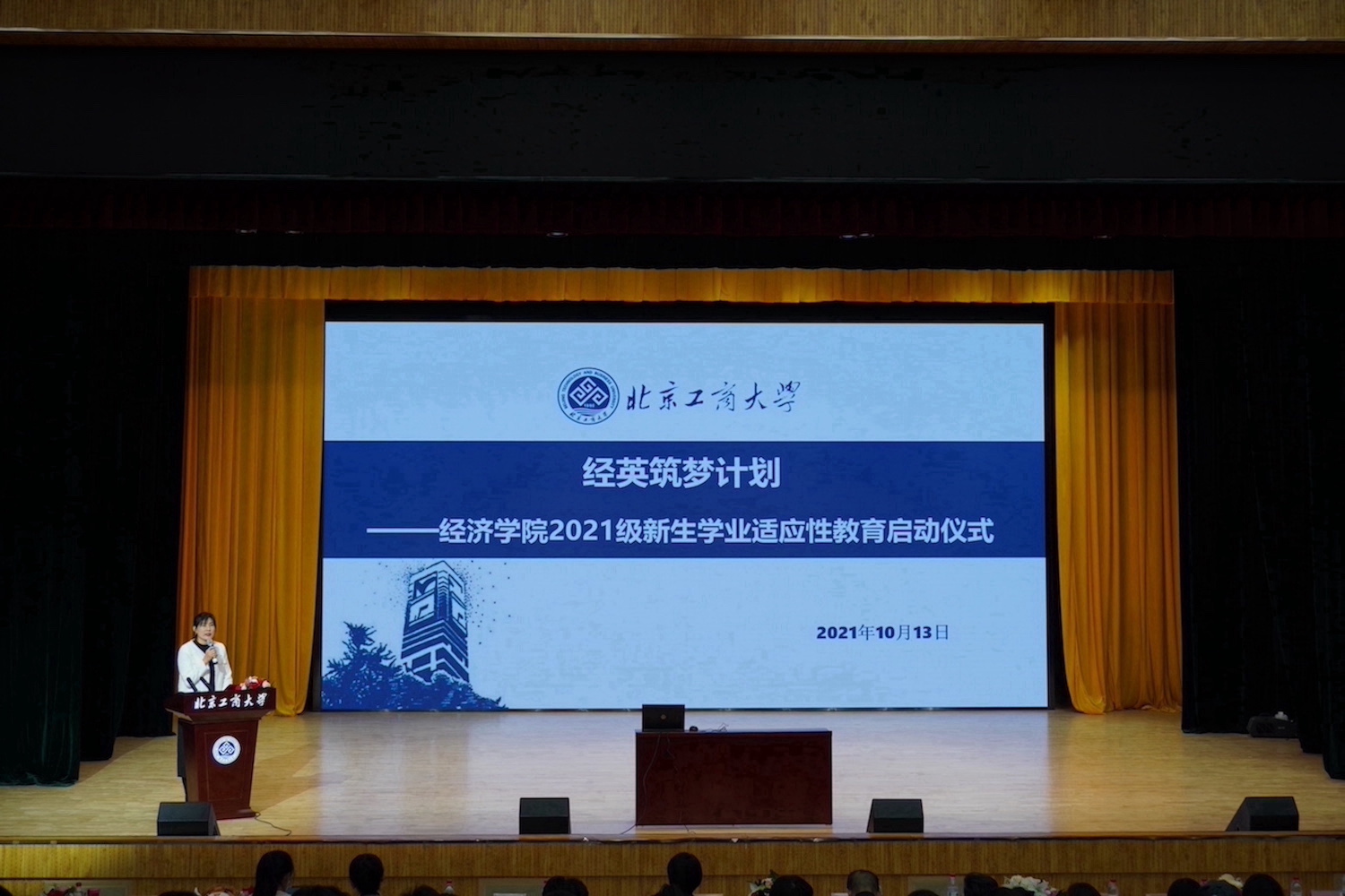 為幫助2021級本科新生順利完成角色的轉換,激發學習主動性、積極性,促進學業提升,營造學院良好的學習風氣,10月13日,“經英筑夢計劃——經濟學院2021級新生學業適應性教育啟動儀式”在良鄉主校舉行。經濟學院黨委書記呂素香、副院長寧威、胡俞越教授、各系教師代表、新生輔導員、本科教學秘書及全體2021級新生共計400余人出席活動。啟動儀式由學院黨委副書記李艷春主持。