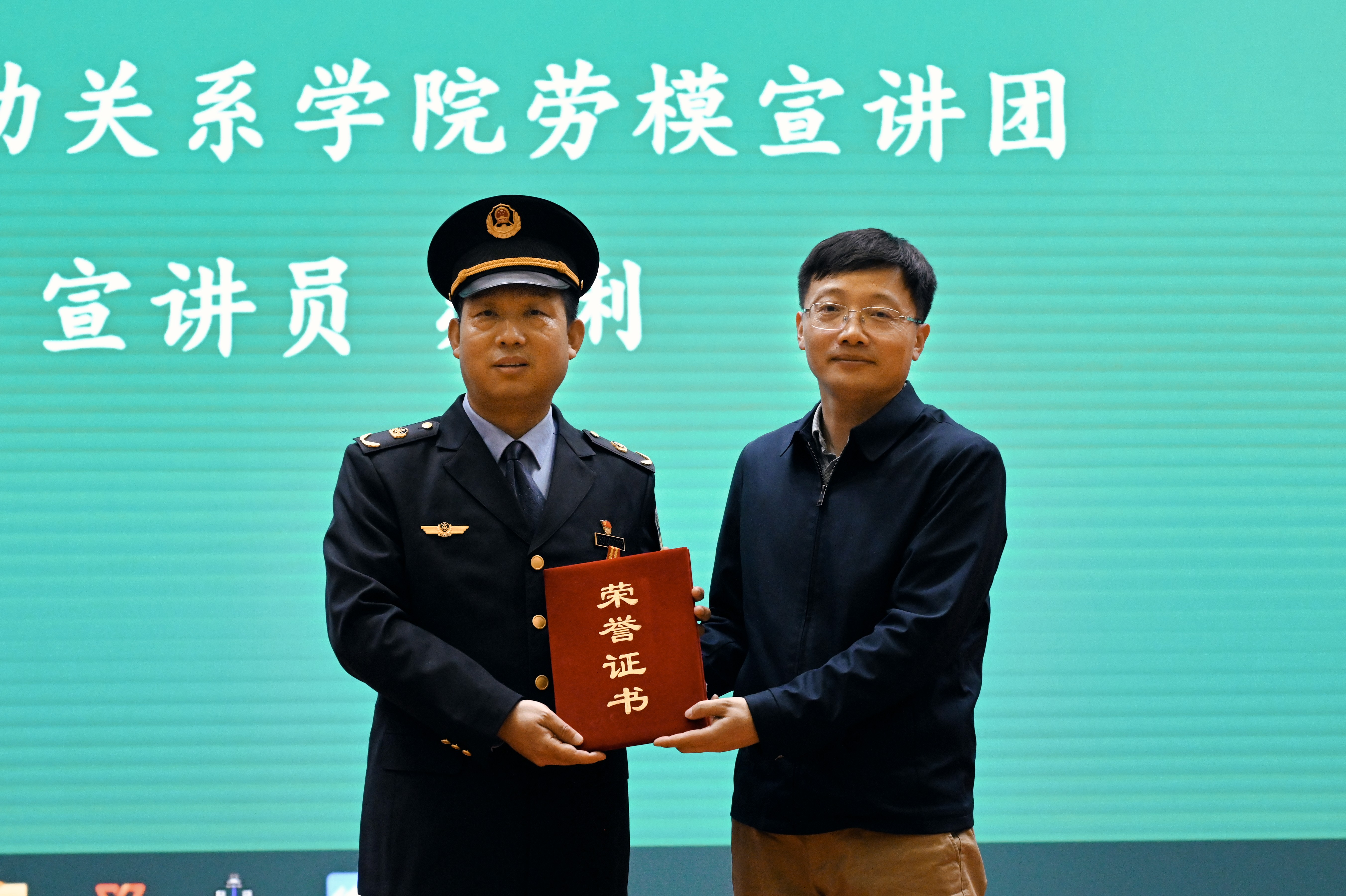 在講座開始前,黨委學生工作部部長、學生處處長兼武裝部部長鄭光,學校工會常務副主席杜亞輝,黨委學生工作部副部長、學生處副處長兼武裝部副部長黨浩分別為授課勞模頒發了學校勞動教育教研室“校外講師”聘書。