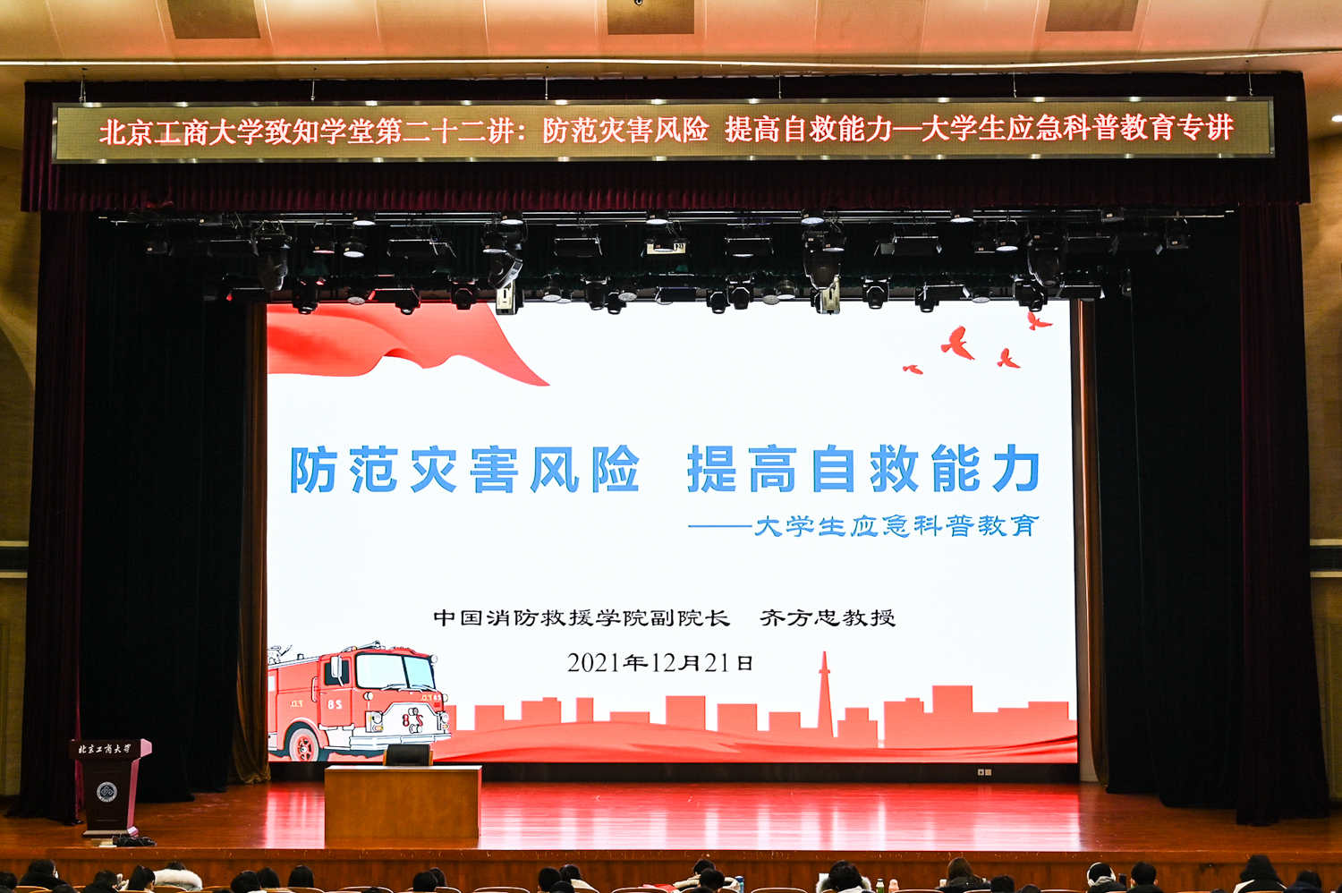 12月21日,中國消防救援學院副院長、教授齊方忠以“防范災害風險、提高自救能力——大學生應急科普教育專講”為主題,在我校開展專題講座。從應急管理模式回顧、災害預防自救常識、應急志愿服務實踐三個方面,介紹了我國防災減災、滅火救援等各項應急管理體系的發(fā)展,對我校學生進行了應急安全專業(yè)知識科普。