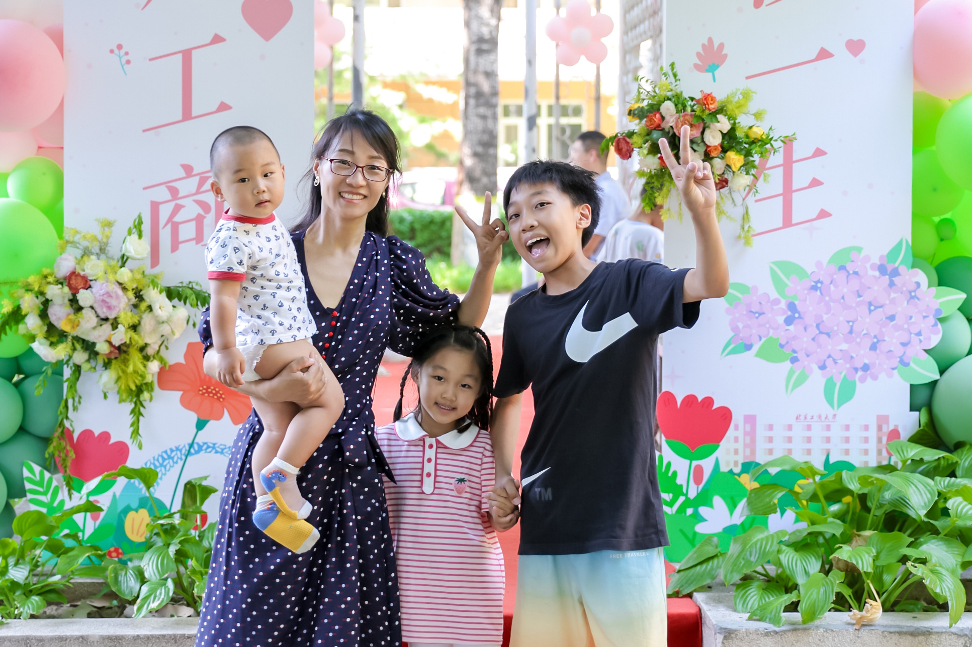 學校布置了背景照相打卡點,校友們紛紛打卡蓋章,留下難忘的記憶。