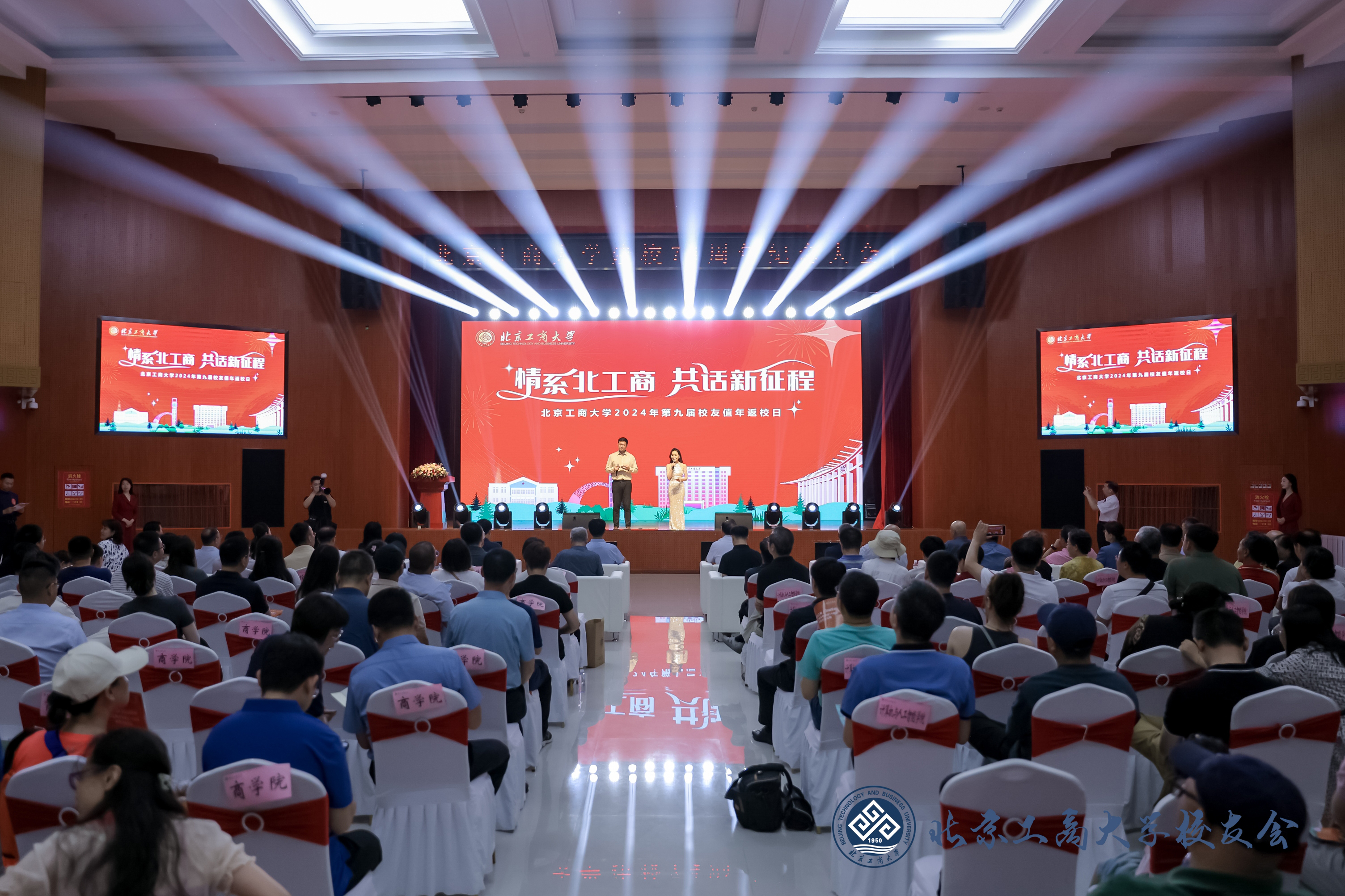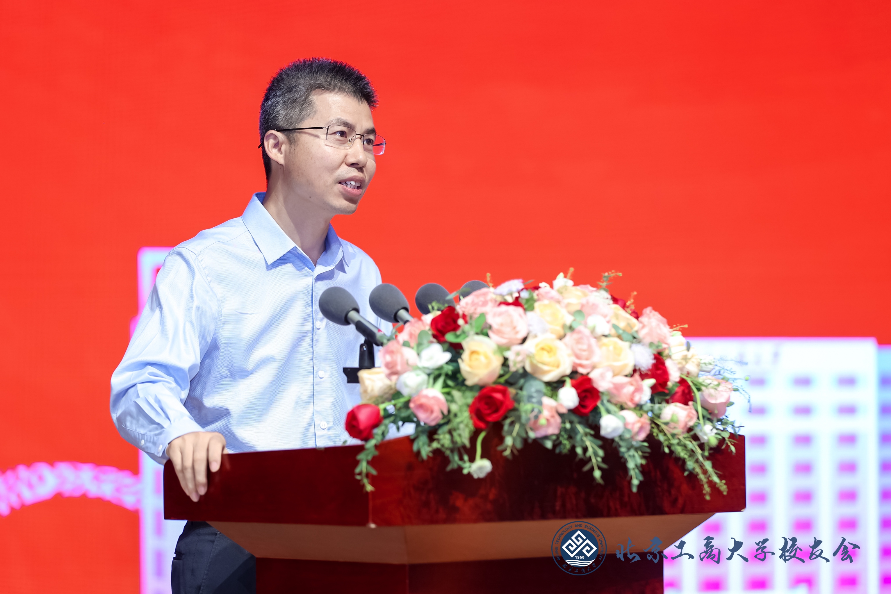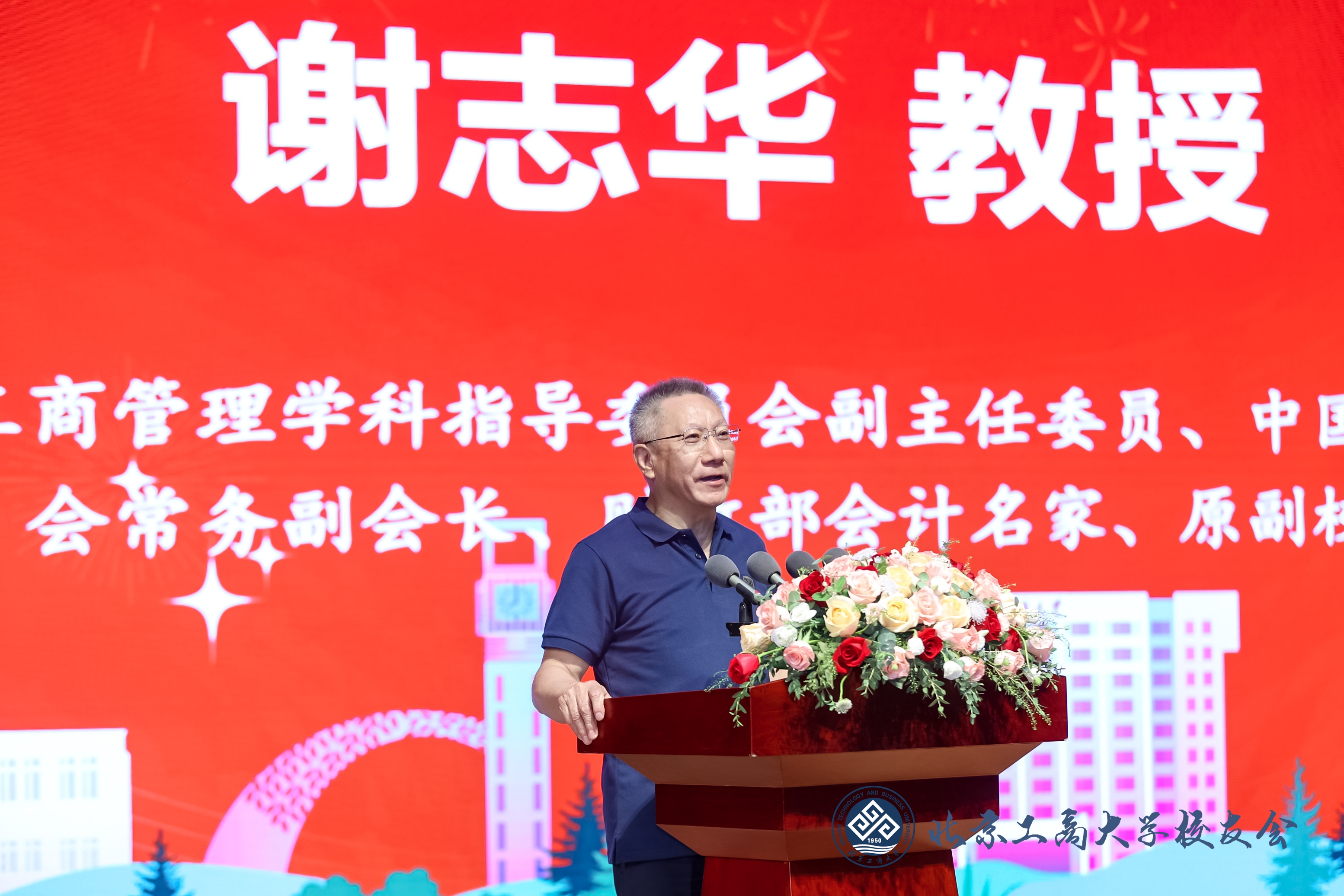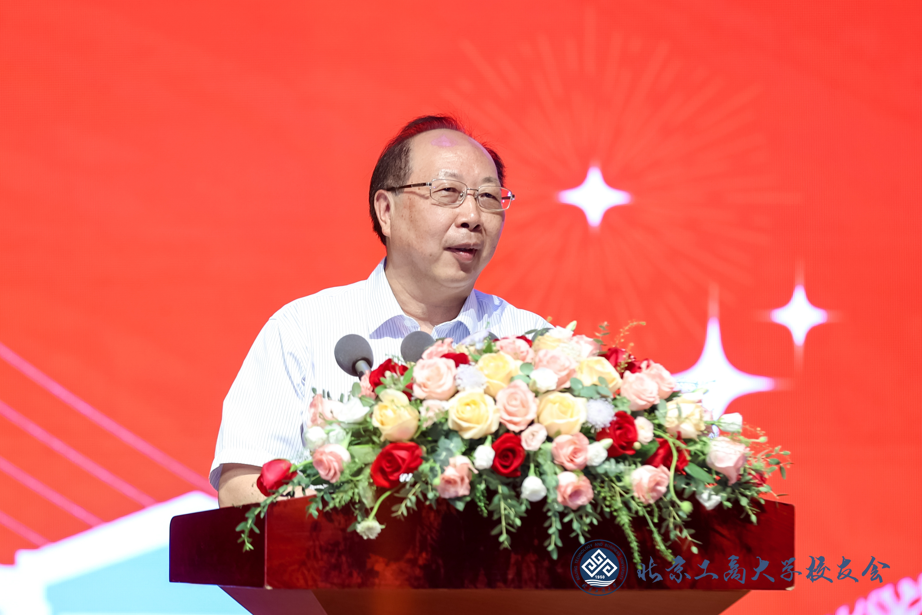 黨委書記黃先開在致辭中代表學校向廣大校友致以親切的問候和美好的祝愿,向返校校友表示熱烈歡迎,向長期以來關心、支持學校建設與發展的各界人士和朋友們表示衷心感謝!黃先開介紹了學校近年發展取得的成績、兩校區辦學定位和未來5年的奮斗目標。他指出,北京工商大學是北京市6所高水平研究型大學之一,74年來,一代代北工商人傳承紅色基因,躬耕不輟,精業篤行。教學科研、學科建設、人才培養、辦學條件等各項事業蓬勃發展,辦學質量、綜合實力和社會美譽度顯著提升,在商科數字化轉型、科教融合服務國家和首都發展戰略等方面做出了積極貢獻。他重點介紹了阜成路校區服務北京國際科技創新中心和國際交往中心的功能定位以及未來的發展思路。