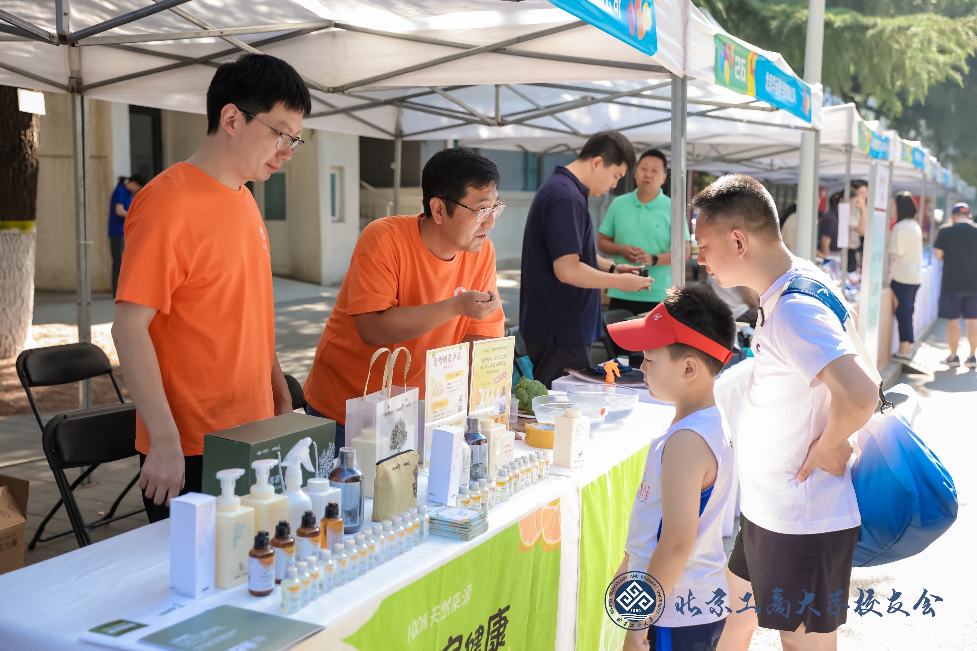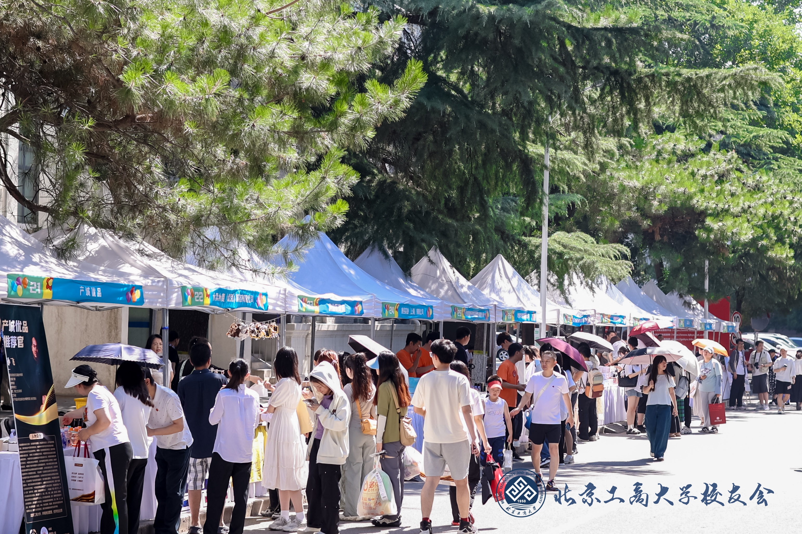 首次開設“校友市集”。現場有40個展位展示校友企業,包括居然之家、京東方、東方淼森、京企直賣、六位仙食品等30多個企業參展。