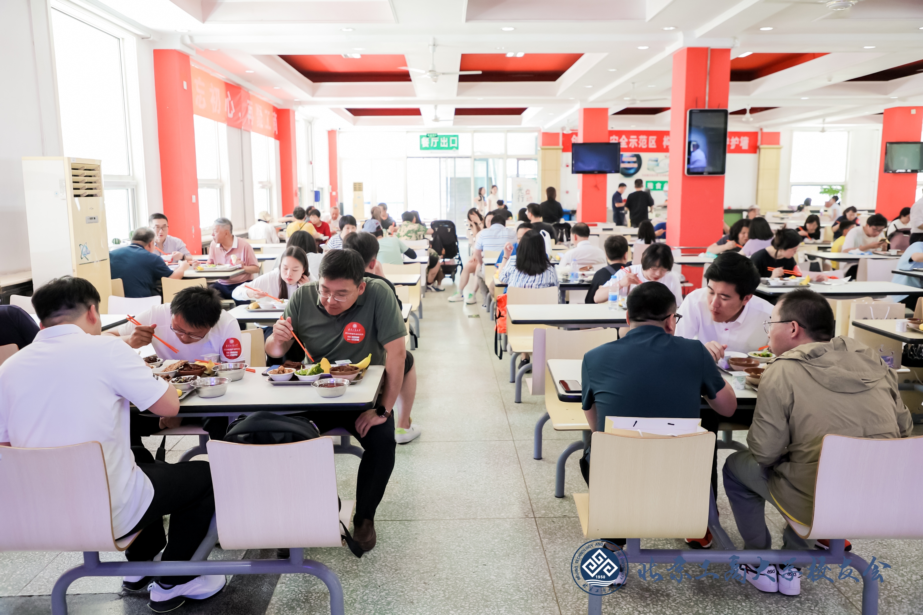 中午,食堂內也熱鬧非凡,各學院組織校友在相應食堂錯峰用餐,昔日的同窗一起用餐,讓大家回憶起了在校的青蔥歲月。