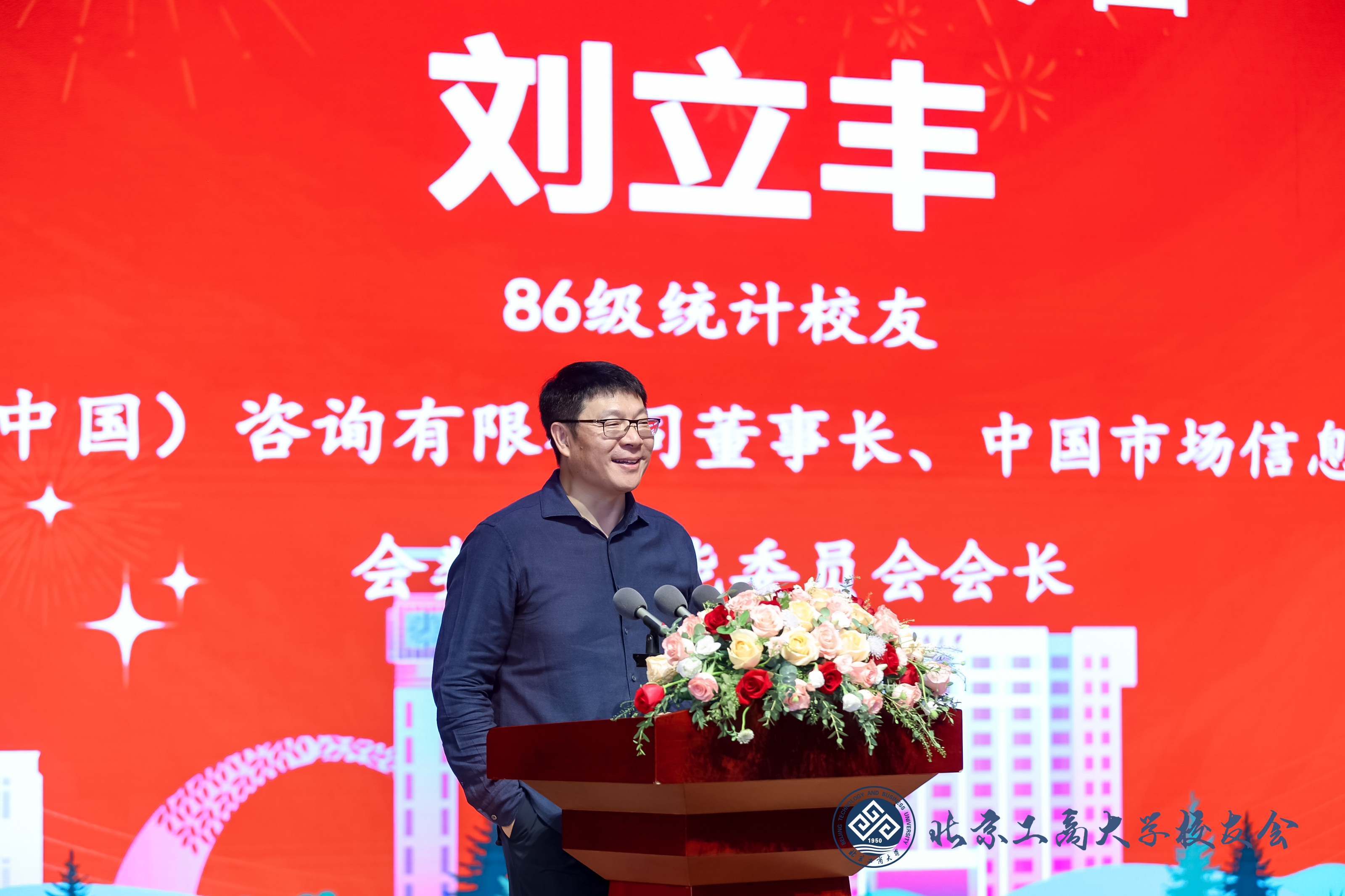 86級統計班校友、益普索(中國)咨詢有限公司董事長,中國市場信息調查業協會數據智能委會會會長劉立豐分享了自己的創業歷程,并表示,在北工商的專業學習對他的職業生涯發展產生了深遠的影響。他談到,統計與數據科學校友聯盟意義重大,作為校友備受鼓舞,將全力以赴為學校的統計和數據科學專業的發展、為學校新的進步貢獻力量。