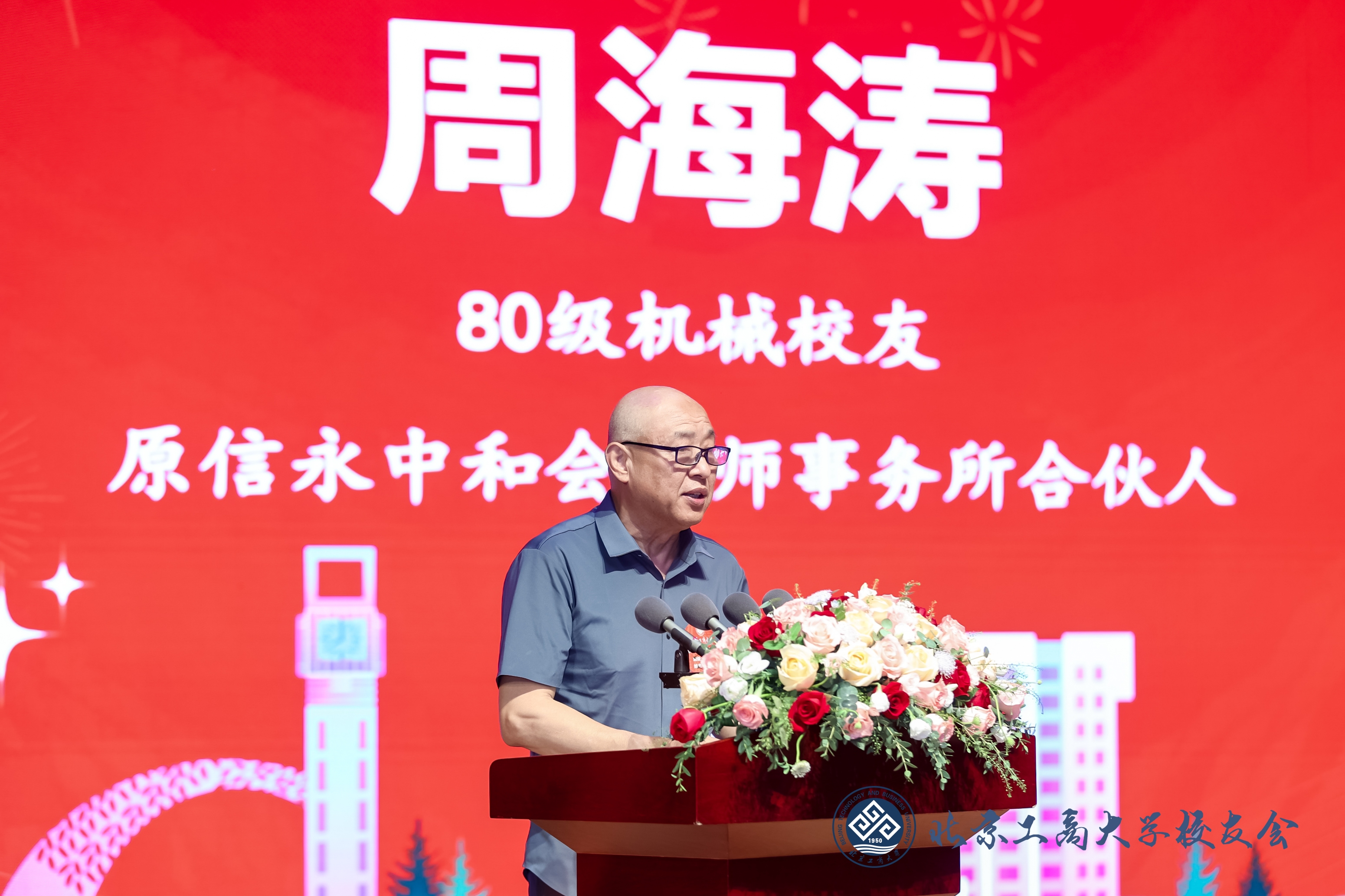 值年返校校友代表、畢業40年的80級機械班周海濤表示,70多年來,學校硬實力、軟實力都取得了長足的進步和發展,讓每位北工商校友心中激起無比的自信心和自豪感。他寄語學弟學妹們牢記校訓,在每一件小事上修煉自己做事的能力和做人的品行,成為一個德才兼備的優秀人才。他祝愿在校的學弟學妹們:“今天你以母校為榮,愿未來母校為你驕傲!”