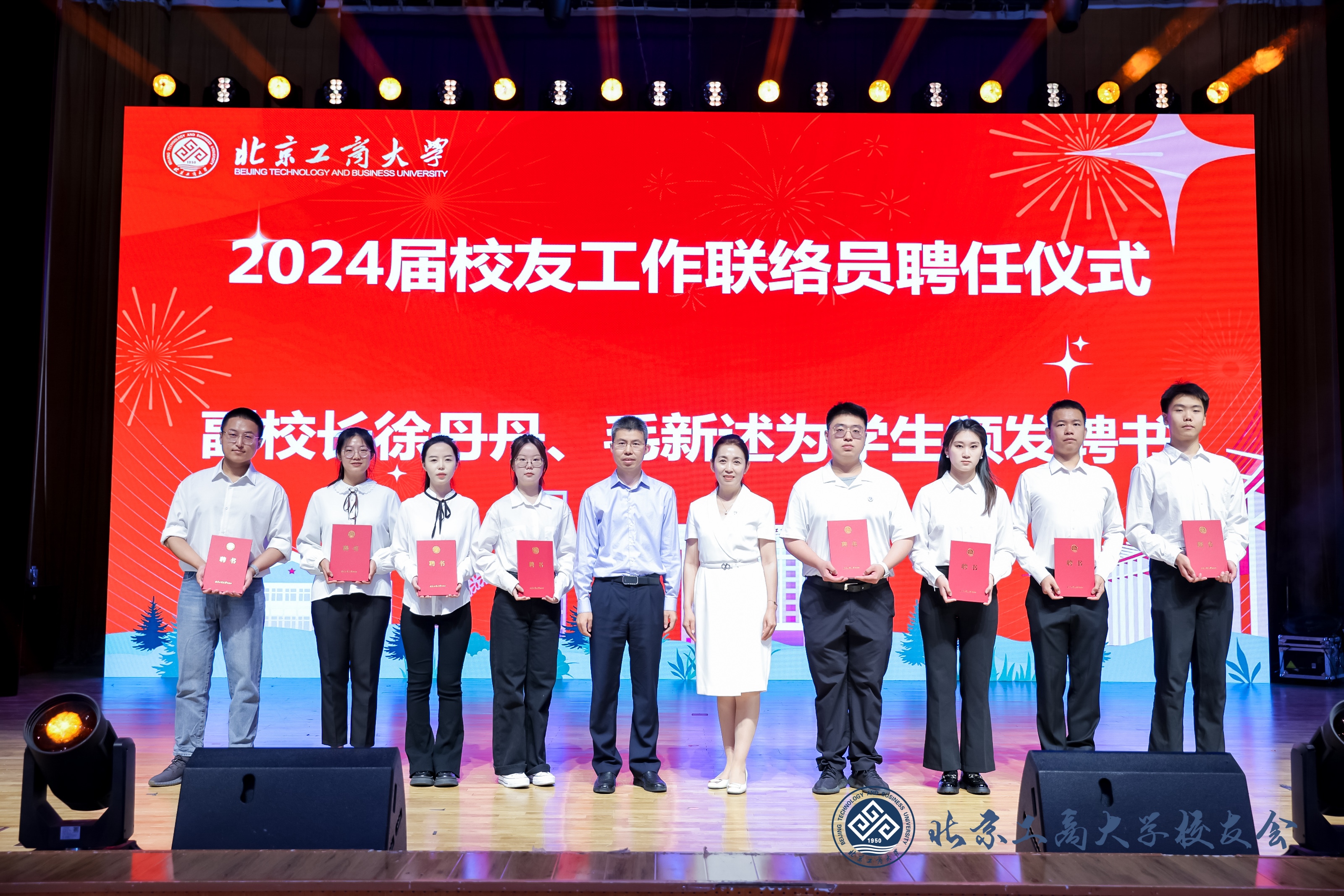 為加強校友工作聯絡,今年學校首次為每個畢業班選聘校友工作聯絡員。學校黨委常委、副校長、學校教育基金會理事長徐丹丹,黨委常委、副校長毛新述為各學院校友聯絡員代表頒發聘書。