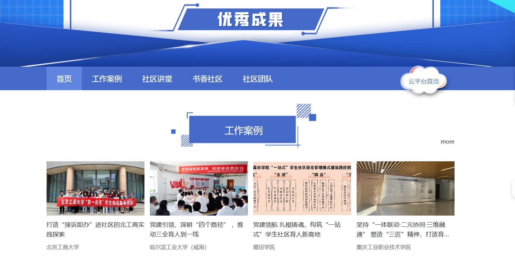據(jù)悉,此次案例評(píng)選活動(dòng)旨在挖掘“一站式”學(xué)生社區(qū)建設(shè)中的亮點(diǎn)特色,為其他高校提供可學(xué)習(xí)、可參考、可借鑒的建設(shè)經(jīng)驗(yàn)?;顒?dòng)按照“社區(qū)講堂、書香社區(qū)、社區(qū)團(tuán)隊(duì)、工作案例”版塊分類展示高校“一站式”學(xué)生社區(qū)建設(shè)風(fēng)采。
