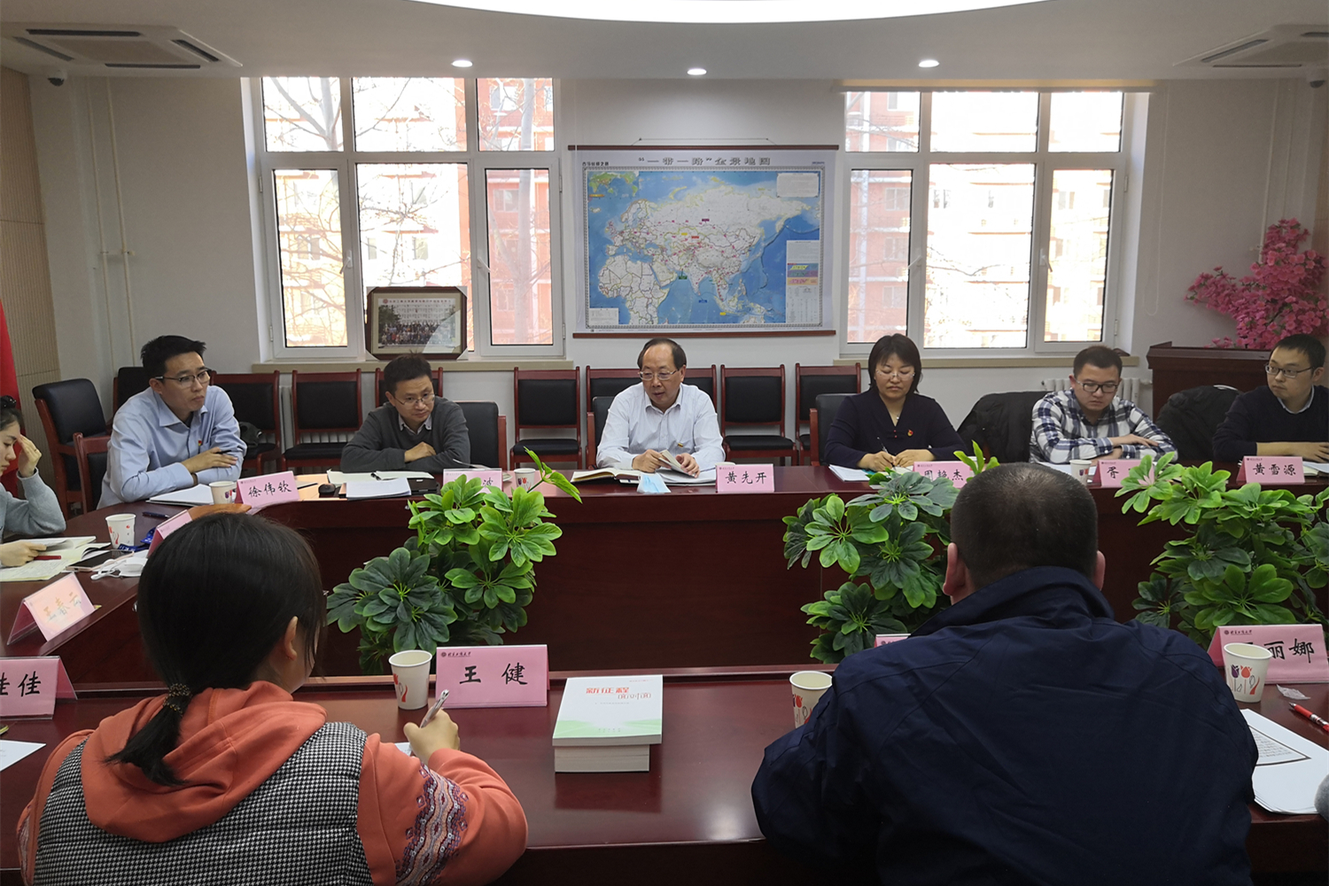 12月1日,數學與統計學院黨委理論學習中心組在良鄉主校區召開黨的十九屆六中全會精神專題學習會。學校黨委書記黃先開出席會議。學校辦公室副主任胥陽、學院黨委理論學習中心組全體成員參加了會議,經濟統計系教師黨支部支部委員和部分教師代表列席會議。會議由學院黨委書記周艷杰主持。