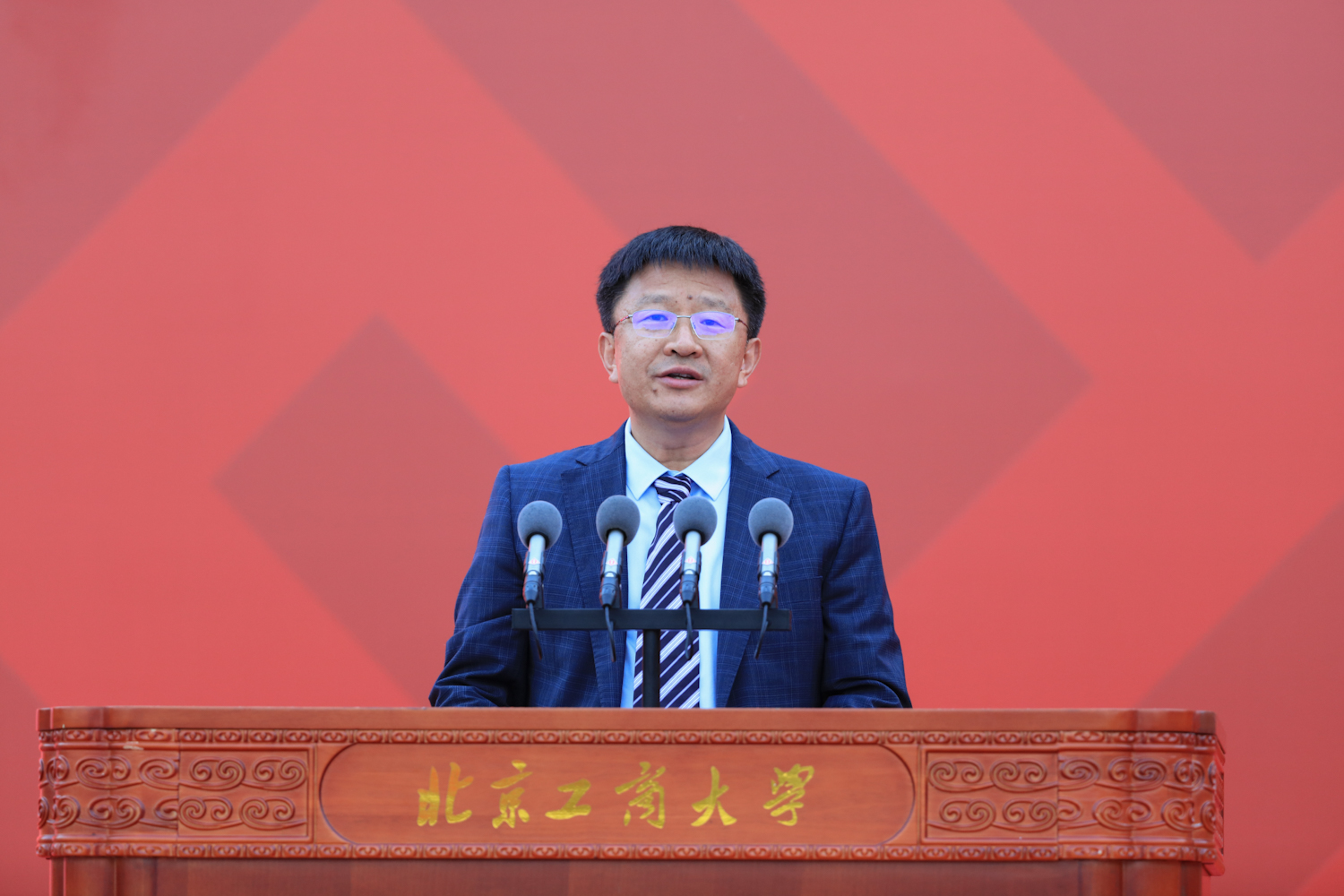 黨委副書記、校長郭建華代表學校黨委和行政,代表全校師生員工,熱烈歡迎2024級新同學進入北工商,并向一路陪伴、辛勤培育你們的家長和老師們致以誠摯的感謝!郭建華表示,北京工商大學作為國內第一所工商大學、北京市高水平研究型大學,依托“理工+經管”的深厚積淀,努力在教育數字化轉型中積極作為,走在前列。同學們選擇了北京工商大學,就是選擇了與數字化時代同行。期待同學們在煥然一新的北工商校園里,不斷探索和創造“數字+教育”的無限可能。
