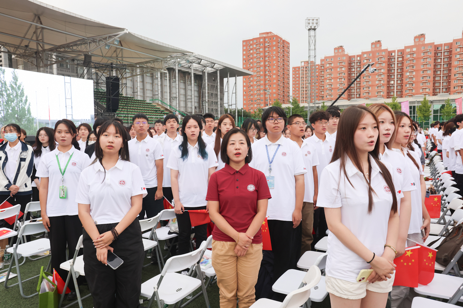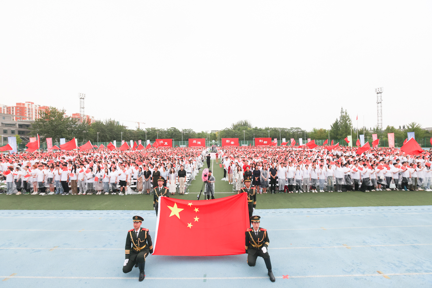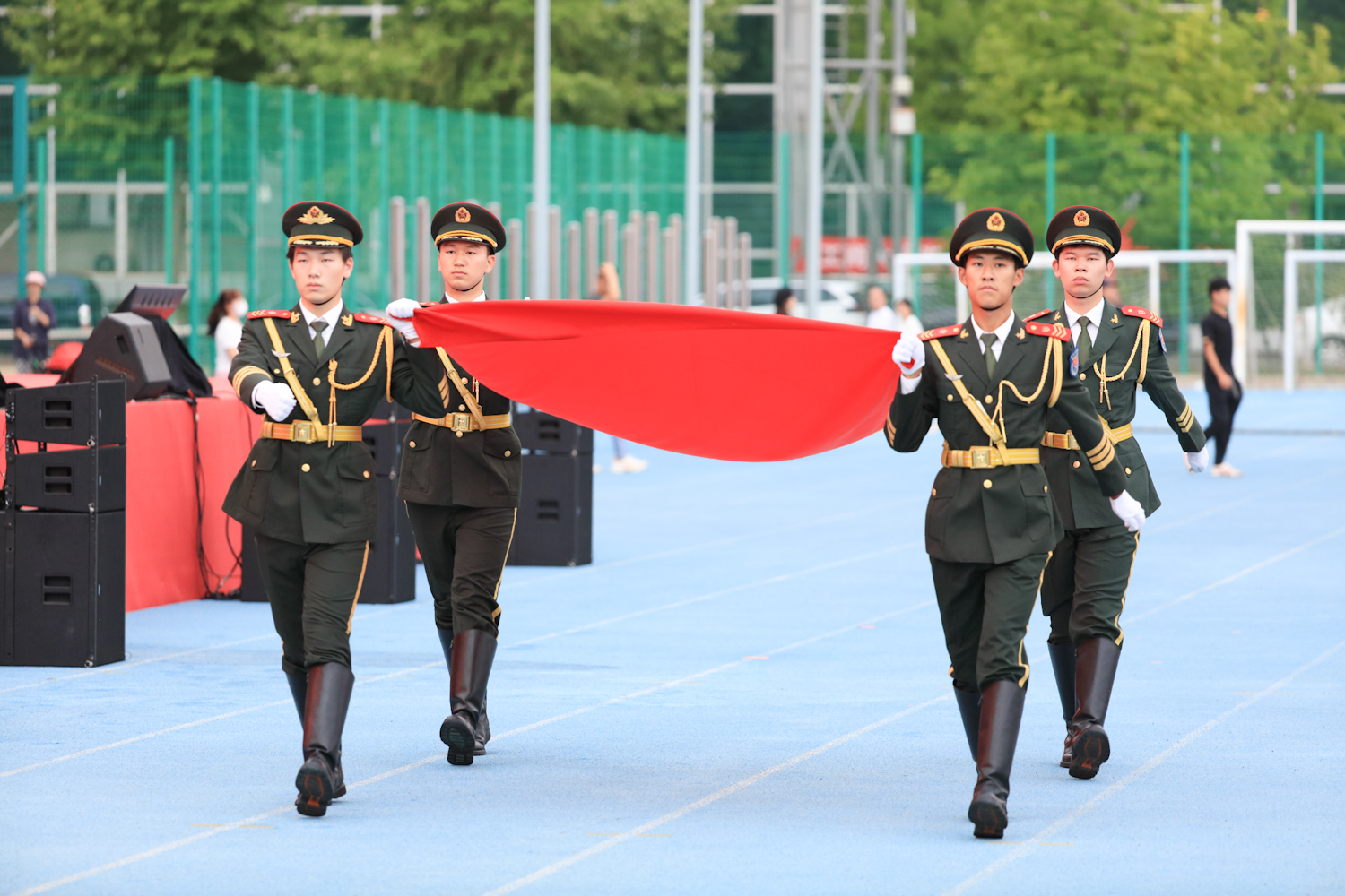 典禮當日,正值中國人民抗日戰爭勝利紀念日暨世界反法西斯戰爭勝利紀念日,鮮艷的五星紅旗冉冉升起,在場師生高唱國歌,致敬前輩、致敬那場艱苦卓絕的斗爭,振興中華,吾輩自強。