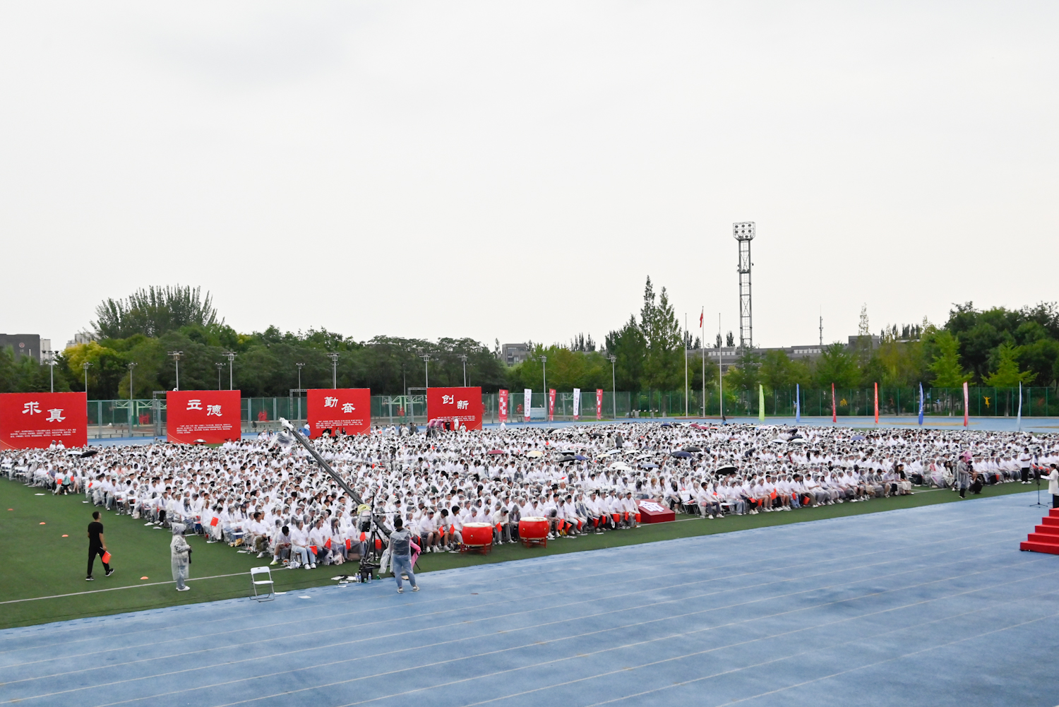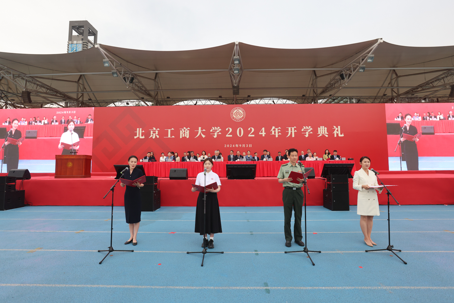 9月3日下午,北京工商大學2024級開學典禮在良鄉主校區舉行。來自五湖四海的5000余名本碩博新生齊聚操場,滿載理想與希望的新旅程由此啟航。校領導黃先開、郭建華、李中奇、宋曉欣、鄭文紅、楊紅、徐丹丹、毛新述、寇紅江出席,相關職能部門負責人、各學院領導、教師代表參加。典禮由黨委書記黃先開主持。