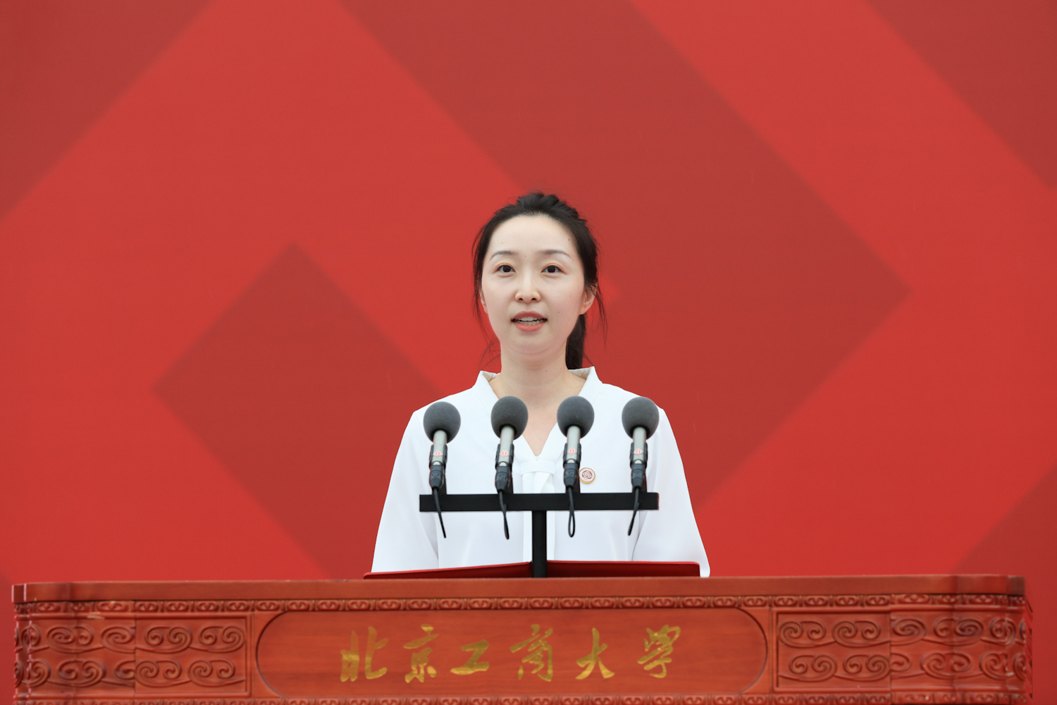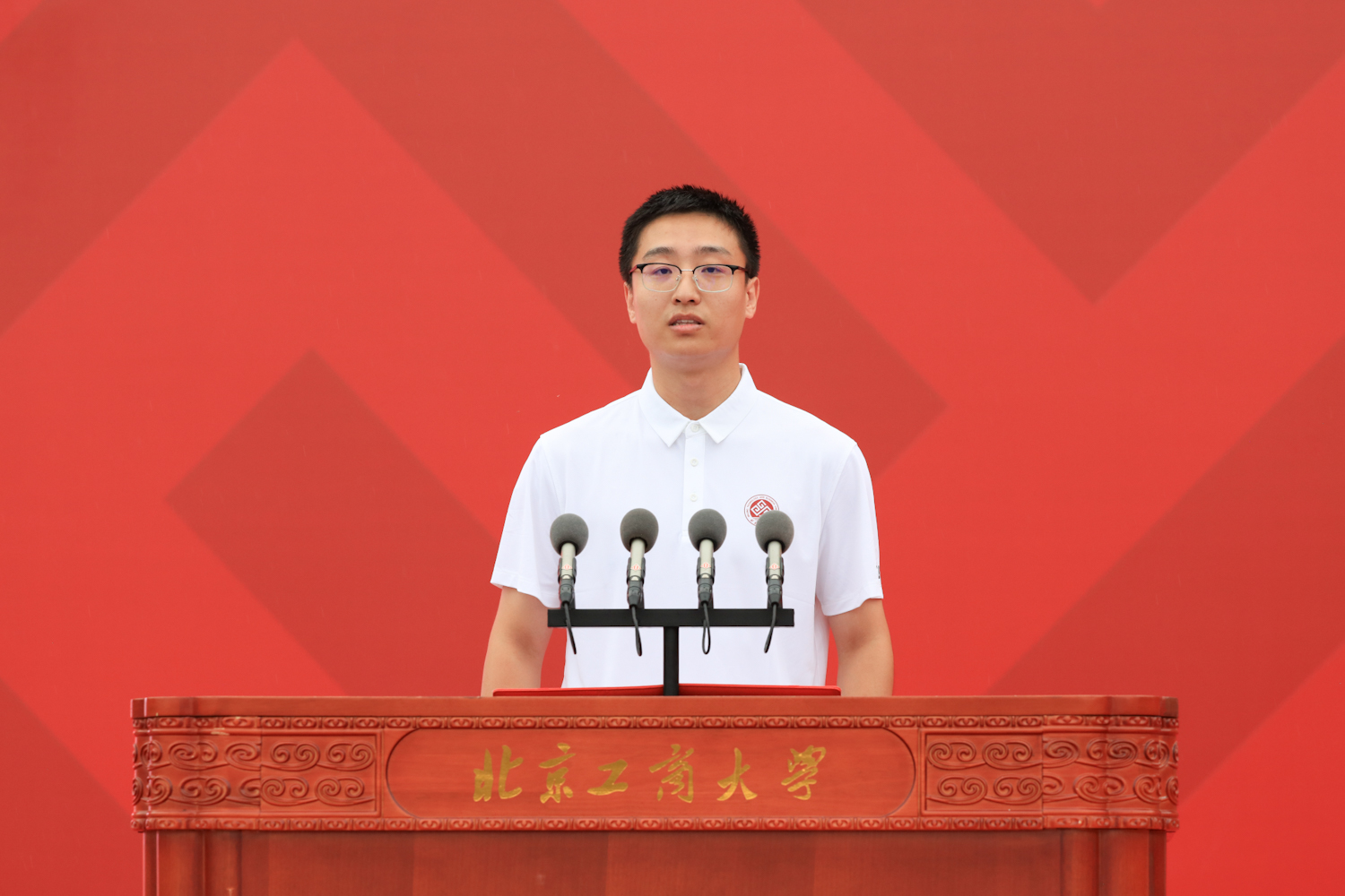 輕工科學與工程學院博士生于笑乾代表研究生新生發言,他感激北工商讓他度過了七年難忘的本、碩時光,積累了知識的廣度,挖掘了思維的深度,錘煉了系統思考的能力,增強了應對挑戰的實力。他希望全體研究生在圖書館勤于讀書、敏銳洞察,以科技創新服務美麗中國,以科技動力為首都和國家的繁榮注入活力,彰顯青春風采、貢獻青春力量!
