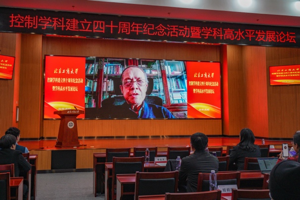 孫寶國院士致辭,他指出,控制學科今天舉辦四十周年紀念活動暨學科高水平發展論壇,總結歷史經驗、謀劃未來發展非常必要、非常重要。我校控制學科自1981年開始招收碩士研究生,迄今為止已有40年歷史,學科經歷了艱苦、踏實的建設歷程。今年以控制學科為主,整合全校資源,獲批系統科學博士點,標志著學科建設水平取得了質變。他表示,碩果成績的取得離不開專家和海內外校友的關心幫助和大力支持,離不開學科全體老師的付出。他向長期以來給予學校和控制學科關心、支持和幫助的專家和廣大校友表示衷心的感謝和崇高的敬意。孫寶國在致辭中希望控制學科要以獲批系統科學博士點為契機,繼續落實立德樹人根本任務,完善高水平人才培養體系,對標國內外一流學科標準,堅持內涵、特色、規范、質量的發展方針,開拓進取,勇攀高峰,在學校高水平研究型大學建設中承擔更多任務,彰顯重大作用,為國家和首都經濟社會發展做出新的更大貢獻。