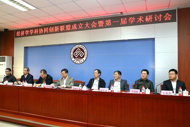 4月8日,我校與天津商業大學、河北經貿大學“經濟學學科協同創新聯盟”成立大會暨第一屆學術研討會在阜成路校區召開。學校校長、中國工程院院士孫寶國,副校長李朝鮮,國家發展與改革委員會宏觀研究院副院長馬曉河,原國務院發展研究中心宏觀經濟部部長米建國,中國區域科學協會理事長、中國人民大學區域與城市經濟研究所所長孫久文,河北經貿大學副校長武建奇、金融學院院長王重潤、黨委書記李春亭,天津商業大學經濟學院院長劉小軍等專家和領導出席了本次會議。我校部分職能部門領導和經濟學院師生100余人參加了會議。會議由我校經濟學院院長徐丹丹和天津商業大學經濟學院院長劉小軍共同主持。